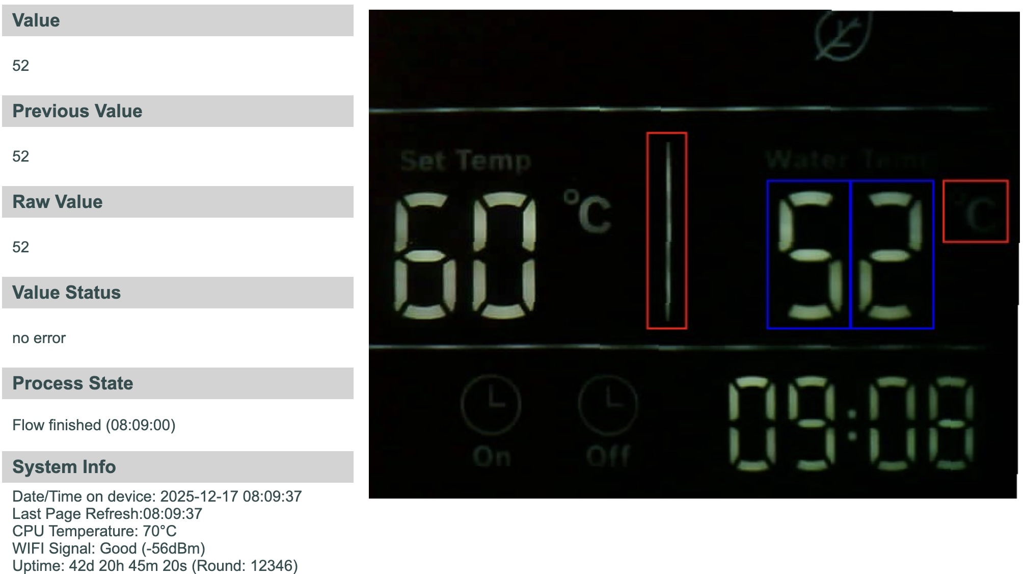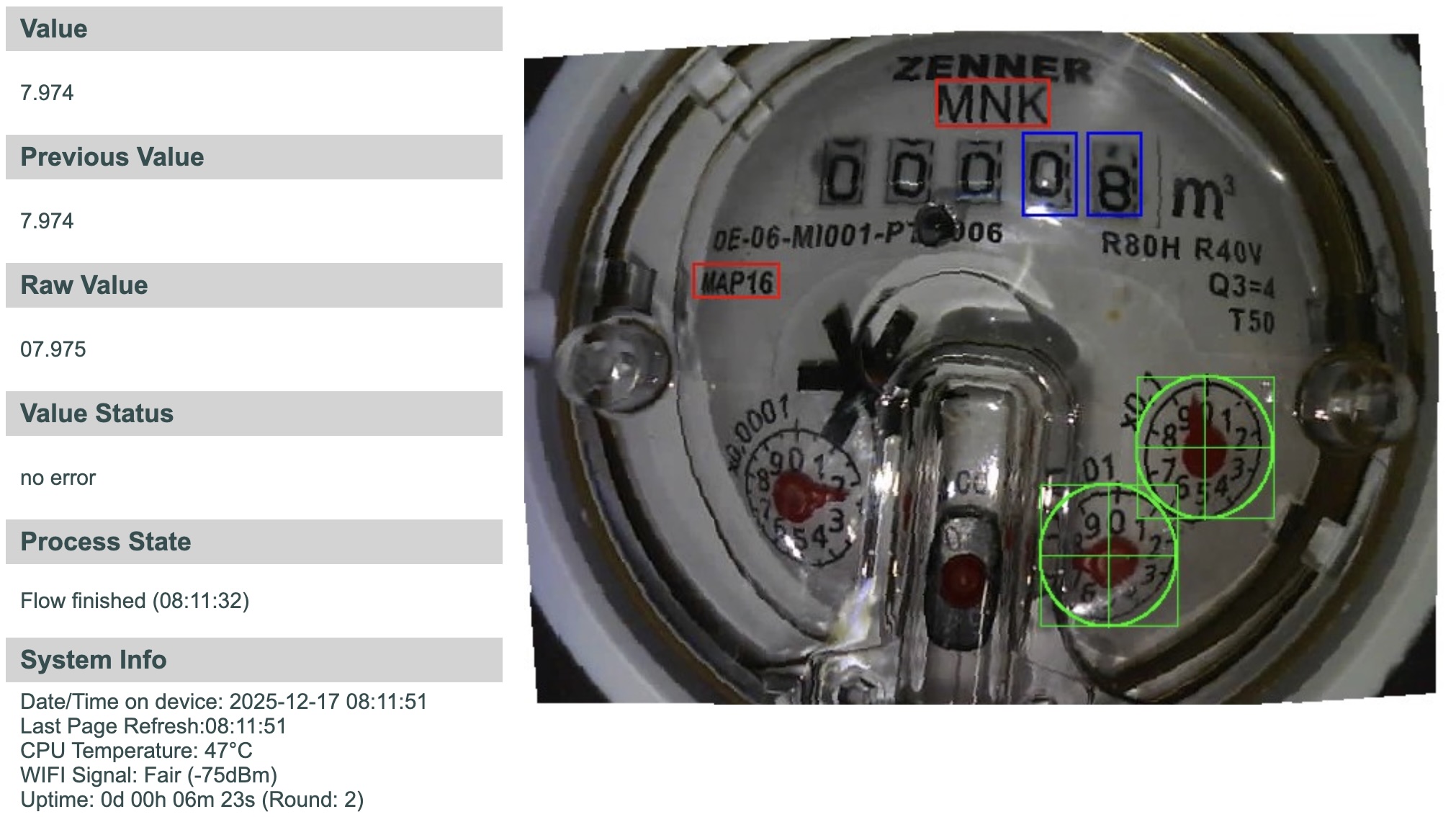 Ich musste während der Kalibrierung das Fenster 4 und 5 um ein Pixel verschieben, bis die Erkennung auch Ziffern 8 und 9 bzw. 5 und 6 unterscheiden konnte.