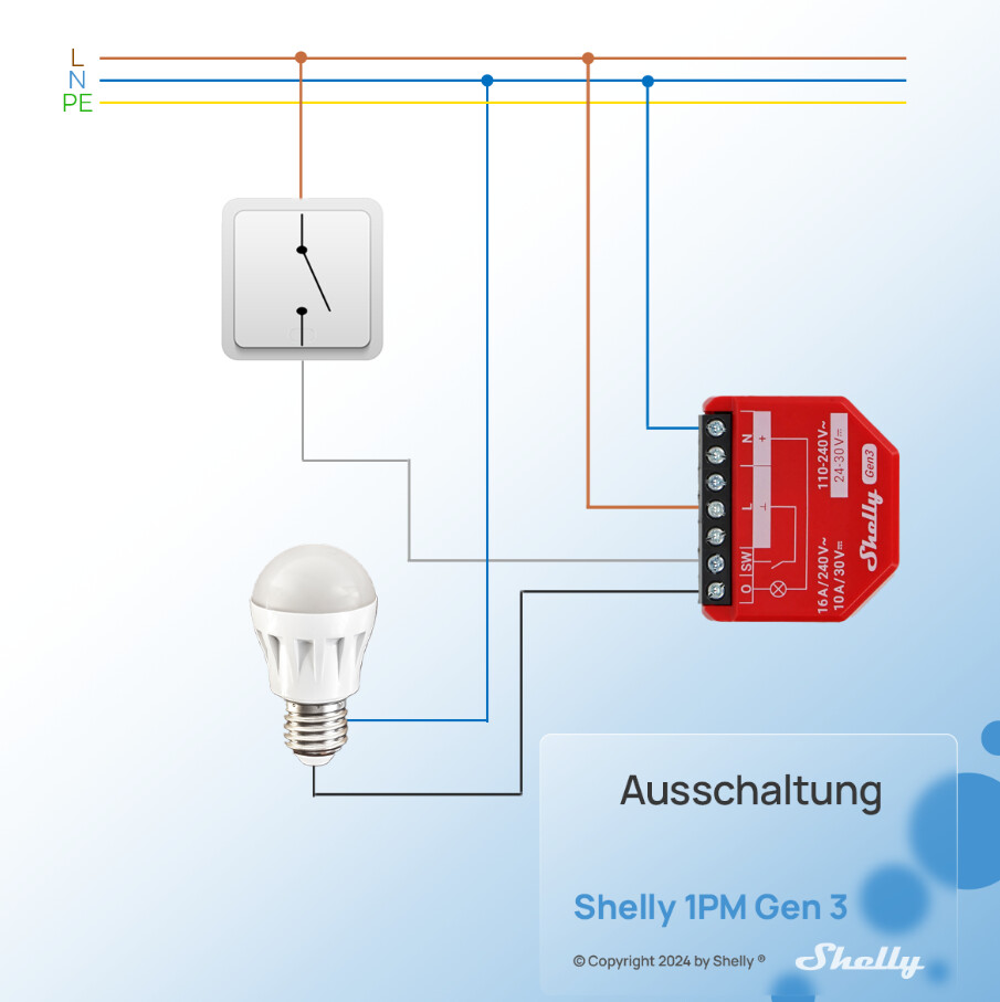 L für den Schelly nimmst du von der Schalterklemme L (Pfeil in den Schalter). Dort ist ja dann auch die Zuleitung angeschlossen.