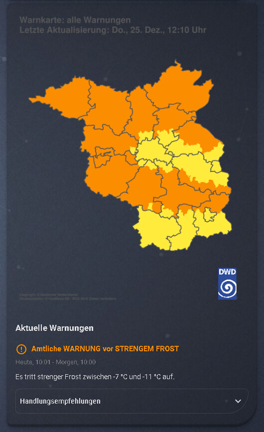 Die Einbindung der Wettercard ist aber gut gemacht. Man kann auch seinen Standort einblenden lassen. Ich werde aber weiterhin meine Picture-Card nutzen, dort gefĂ€llt mir die Karte noch etwas besser, weil auch die Legende sichtbar ist. Da kommt mir auch glatt eine Idee fĂŒr eine Card.