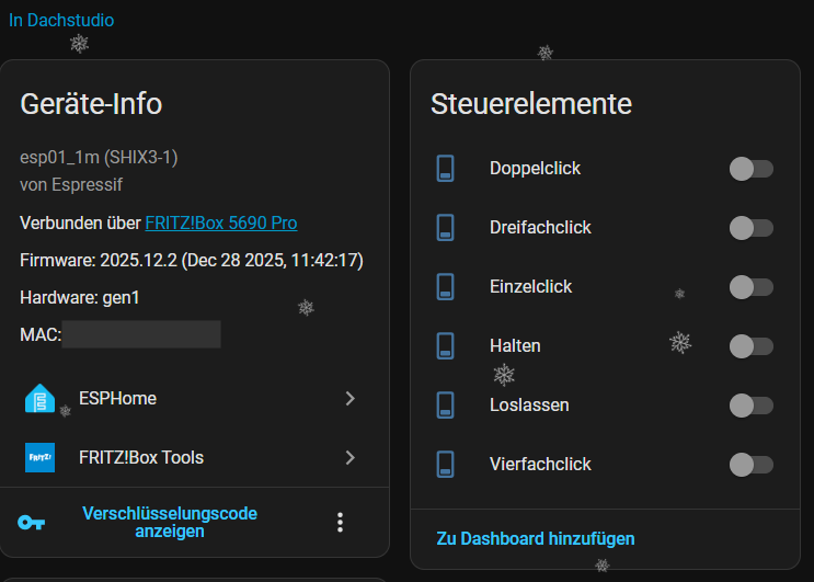Um Elektroschrott zu vermeiden habe ich drei Shelly UNI (Gen1) sowie einen Shelly I3 umgeflasht auf ESPHome (mit Umweg ĂŒber Tasmota)
