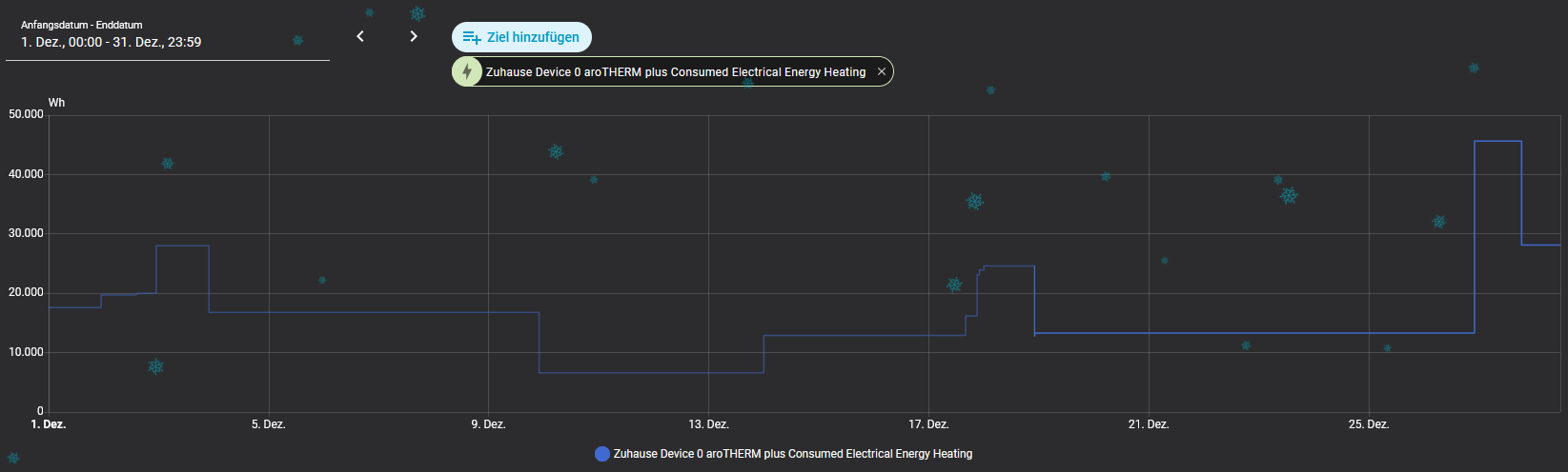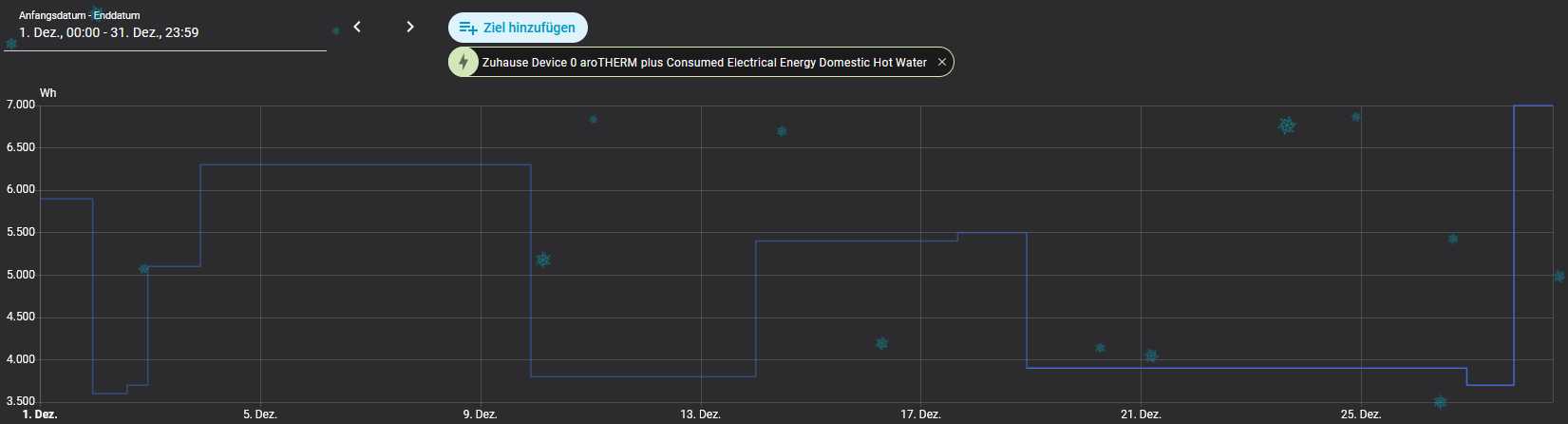 Ich bräuchte mal Hilfe bei der Einbindung der Vaillant Wärmepumpe in das Energy Dashboard: Ich würde gerne den Stromverbrauch separiert nach Warmwasser und Heizung in die Einzelgeräteübersicht einbinden und finde dafür nicht die richtige Entität. Die Wärmepumpe ist über die myVaillant Integration angebunden. Ich dachte eigentlich, dass “Consumed Electrical Energy Heating“ (bzw. Hot Water) die Richtige wäre, aber die liefert komische Werte.