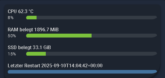 Die bar-card lief jetzt bei mir nicht mehr. Bin dann auch auf die entity Progress Card umgestiegen. Gefällt mir sehr gut. Habe lieber Balken als halbe Rundungen als Anzeige.