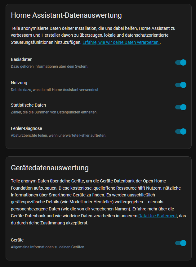 Bei Home Assistant kann man in den Code gucken. Man kann sich die payload anschauen und sieht dann, da ist nix was personalisiert ist. Zudem ist es ja für einen guten Zweck und wird einem persönlich in Zukunft helfen, das Produkt tatsächlich besser zu machen.