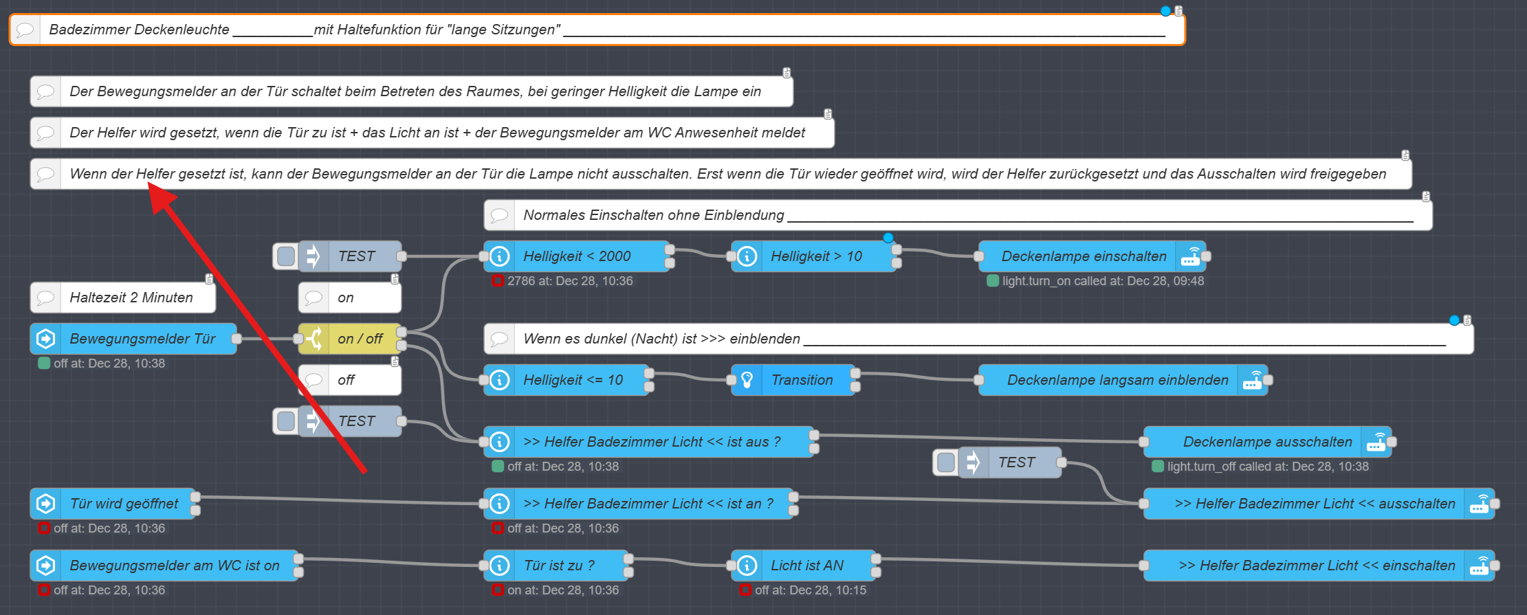 Die für mich effektivste Hilfe ist, dass ich alle Automationen in Node-RED projektiere.