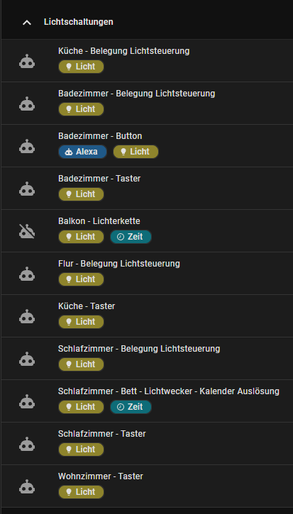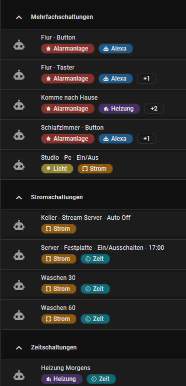mich würde mal interessieren wie ihr eure Automatisierungen logisch benennt. Bei meinen jetzt 60 Automatisierungen verliere ich so langsam den Überblick. Ich möchte die mal einheitlich bezeichnen und bräuchte da mal Inspiration.