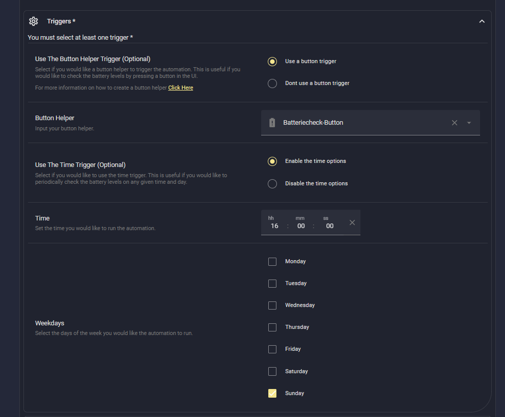 Hi, ich nutze den BP auch und läuft bei mir sehr zuverlässig. Wie hast du die Trigger definiert? Das würde ich hier als pre-action ansehen. Ich lasse mich jeden Sonntag Nachmittag informieren, wie der Stand Batterien ist.