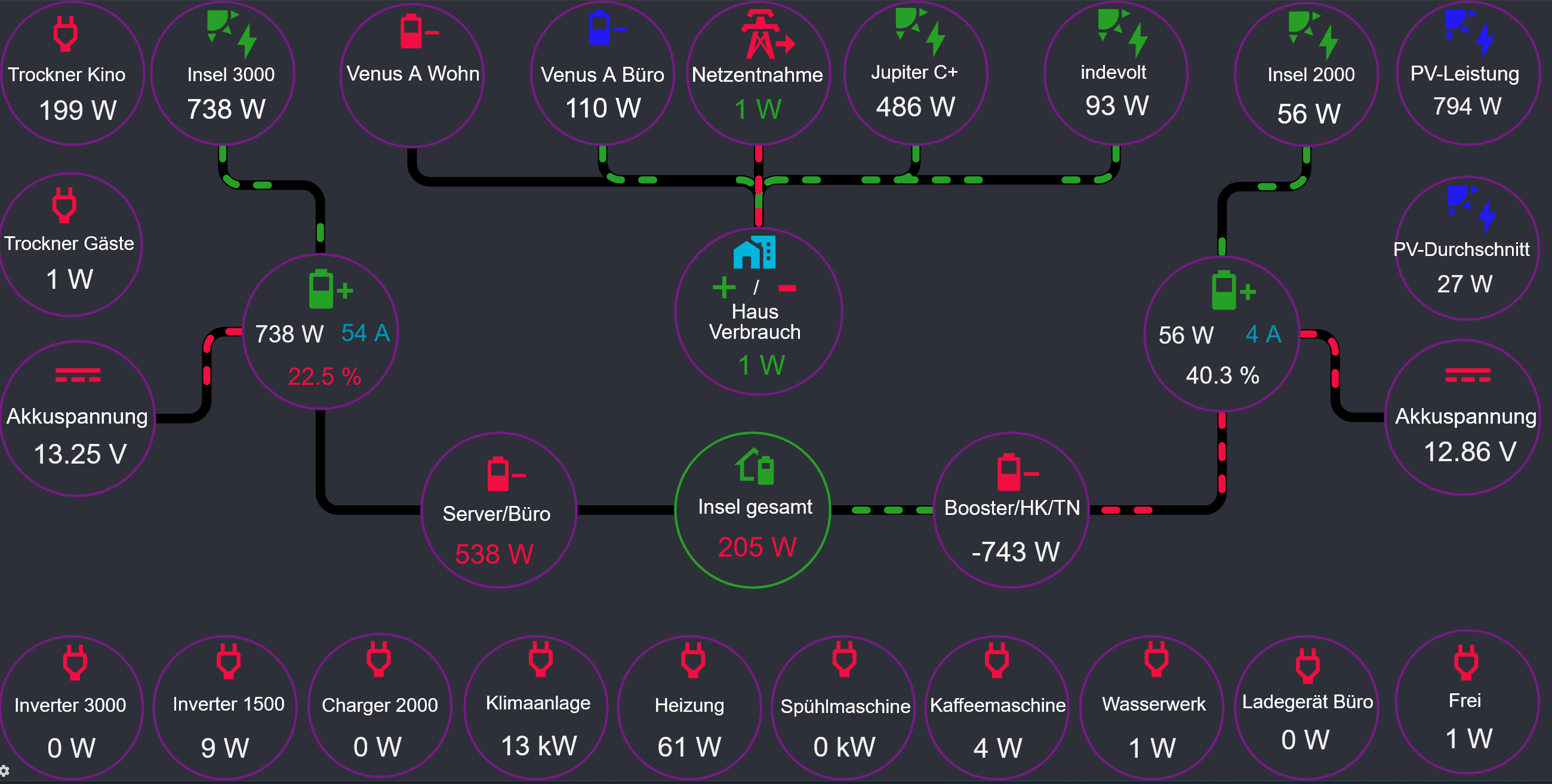 Ich hänge mich mal rein, weil ich gefühlt alle eDashboards in HA ausprobiert habe, auch die zwei oben, für eine schnelle Übersicht sind sie nicht so gut geeignet, siehe Bild (das läuft auf einem 7 Zoll Monitor)