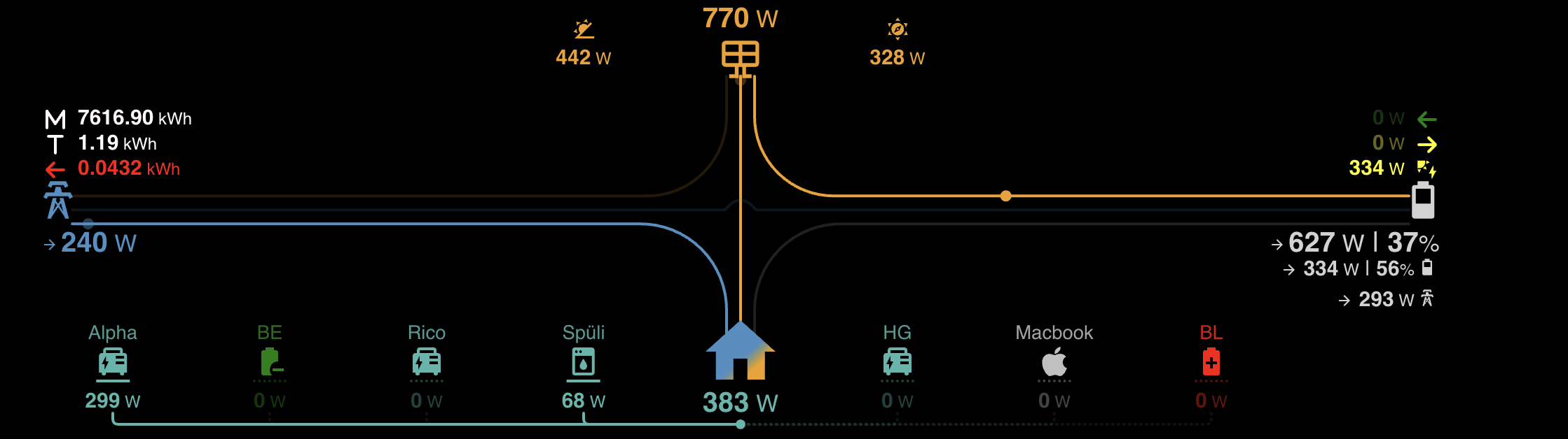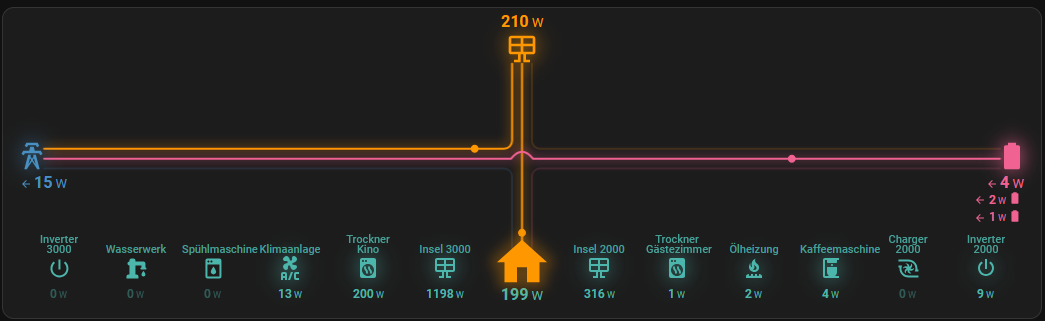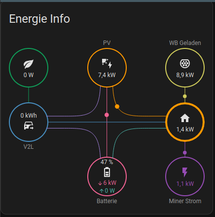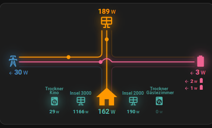 Hallo, ich bin vom Iobroker umgestiegen zu HA. Ich vermisse schmerzlich den Energieflussadapter. Wer ihn nicht kennst, hier mal ein Video. Was ich dabei sexy finde, neben der Tatsache, das er sehr einfach zu konfigurieren ist, ist die Tatsache, dass ich auch die Verbräcuhe von mehreren Messstellen anzeigen kann. Alles was ich bisher für HA gefunden habe, hört bei 3 oder 4 auf. Kennt jemand so etwas zufällig? Den “sich aufteilenden Strahl“ vom Enegie Dashboard kenne ich, find eihn aber optisch nicht so schick.
