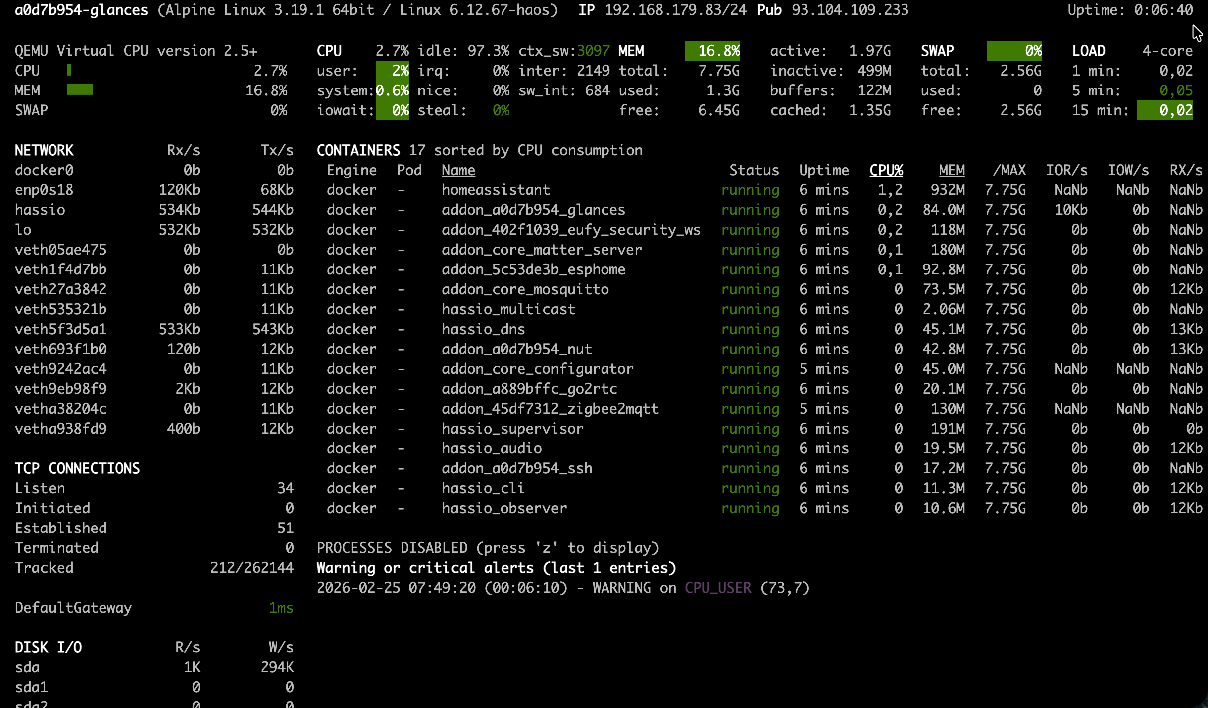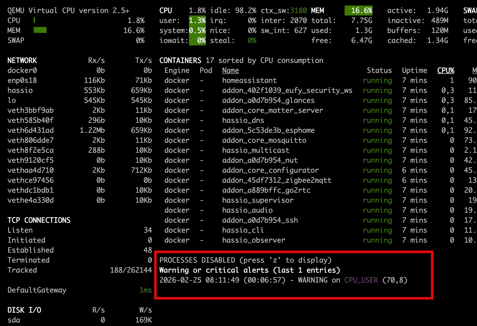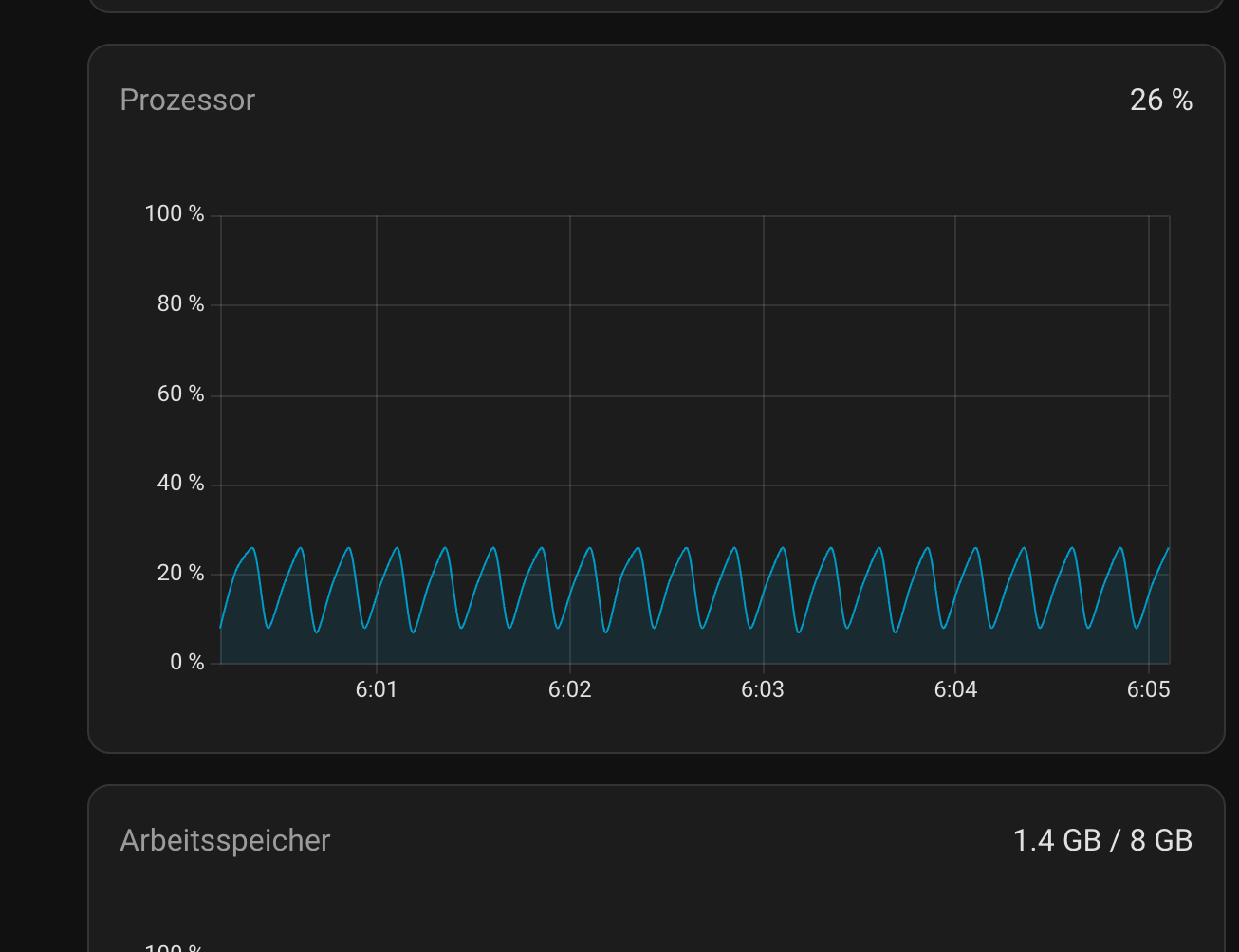 Mir ist aufgefallen, dass das HA System eine erhöhte CPU-Last hat, da der Lüfter des PCs öfter zu hören ist. Leider weiß ich nicht, seit wann das Problem besteht.