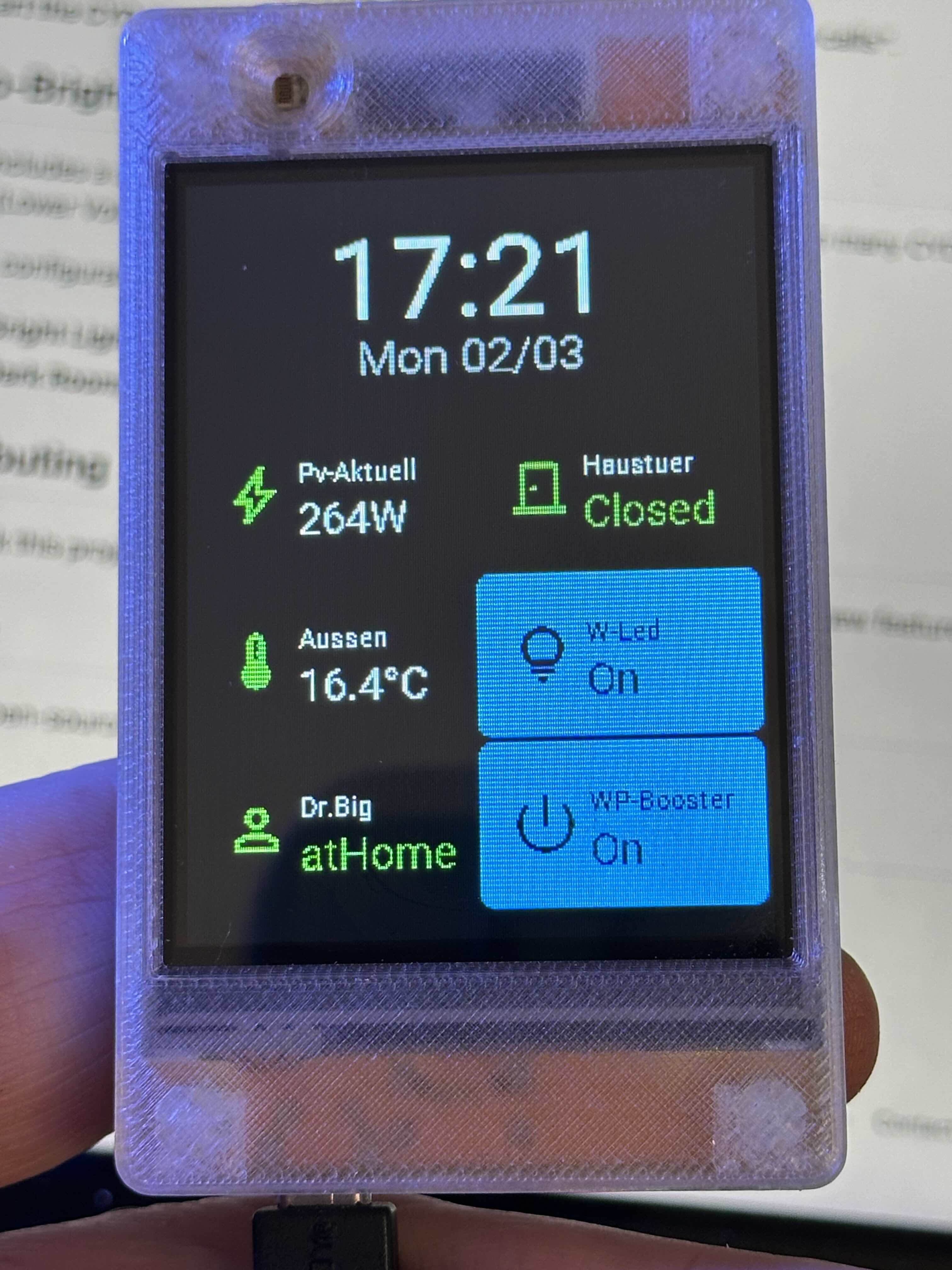 Danke schön fürs testen, habe ich mir fast gedacht, dass es bei der Display-Ausrichtung und dem Typ wieder Probleme gibt. Aber um mal schnell eine grafischen Anzeige zu bauen, ist das wirklich super. Man kann ja dann auch nur den Lambda Teil herauskopieren und in seinen Code einfügen, erspart auf jeden Fall beim CYD ein Menge Testerei.