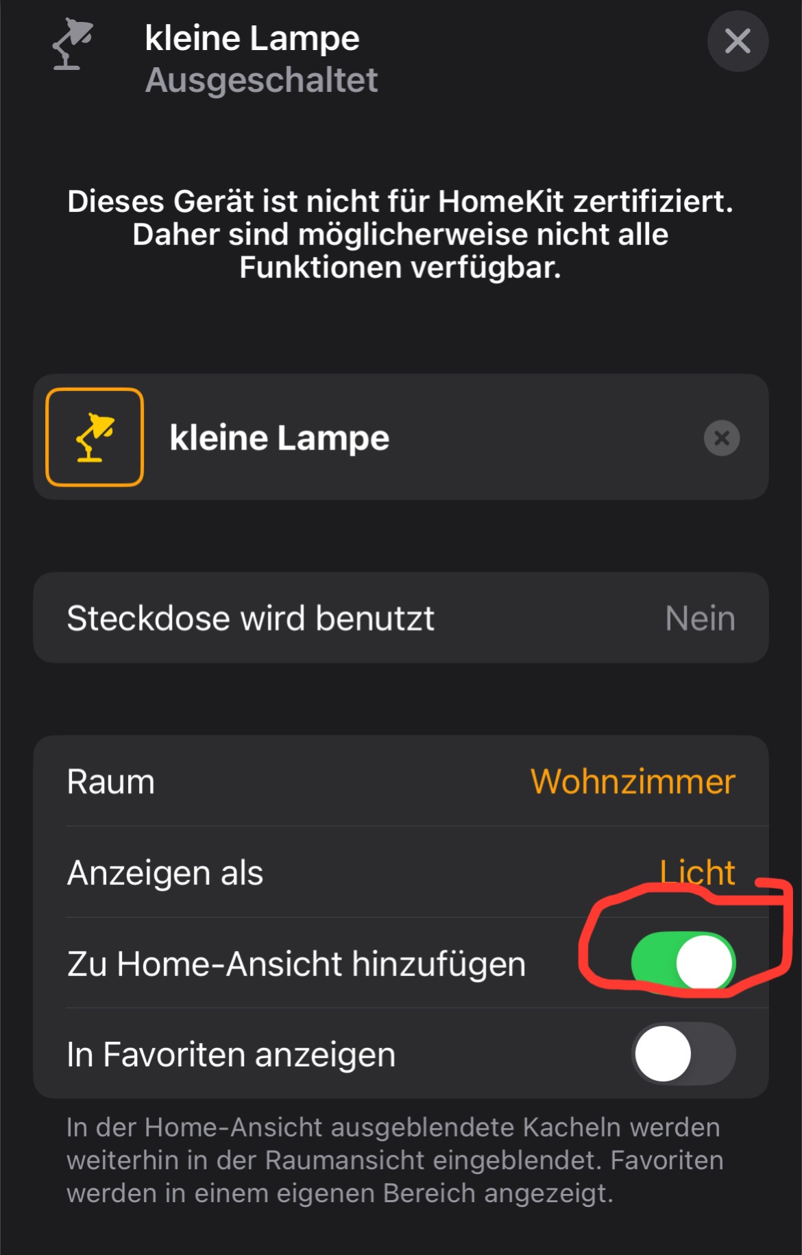 Danke Jeens. Diese Einstellung kenn ich schon. Das Problem besteht wie erwähnt vorwiegend bei Sensoren, wie z.B. Fenster-Türkontakte von Aqara. Sie werden auch beim Raum, wenn ich diesen aufrufe angezeigt aber eben nur ganz oben. Bei diesen kann ich in der Home App nur auswählen: „in Übersicht des Zuhauses anzeigen“. (was bei mir auch aktiviert ist). Diese Einstellung erscheint, wenn ich „Status und Mitteilungen“ aufrufe. Es gibt gar nicht die Auswahl „Zu Home-Ansicht hinzufügen“…