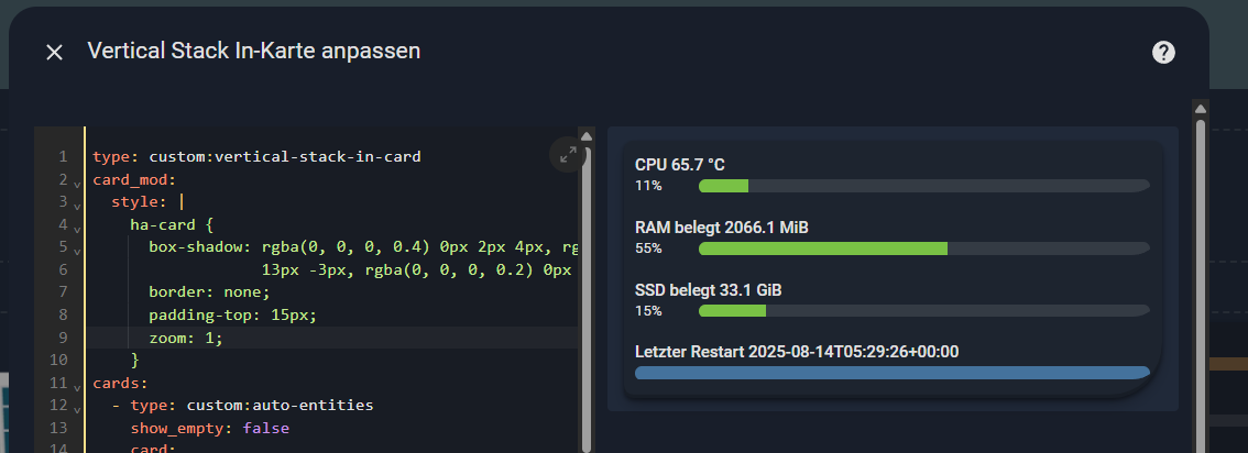 Und die custom:stack-in-card runtergeladen und auch die custom:vertical-card