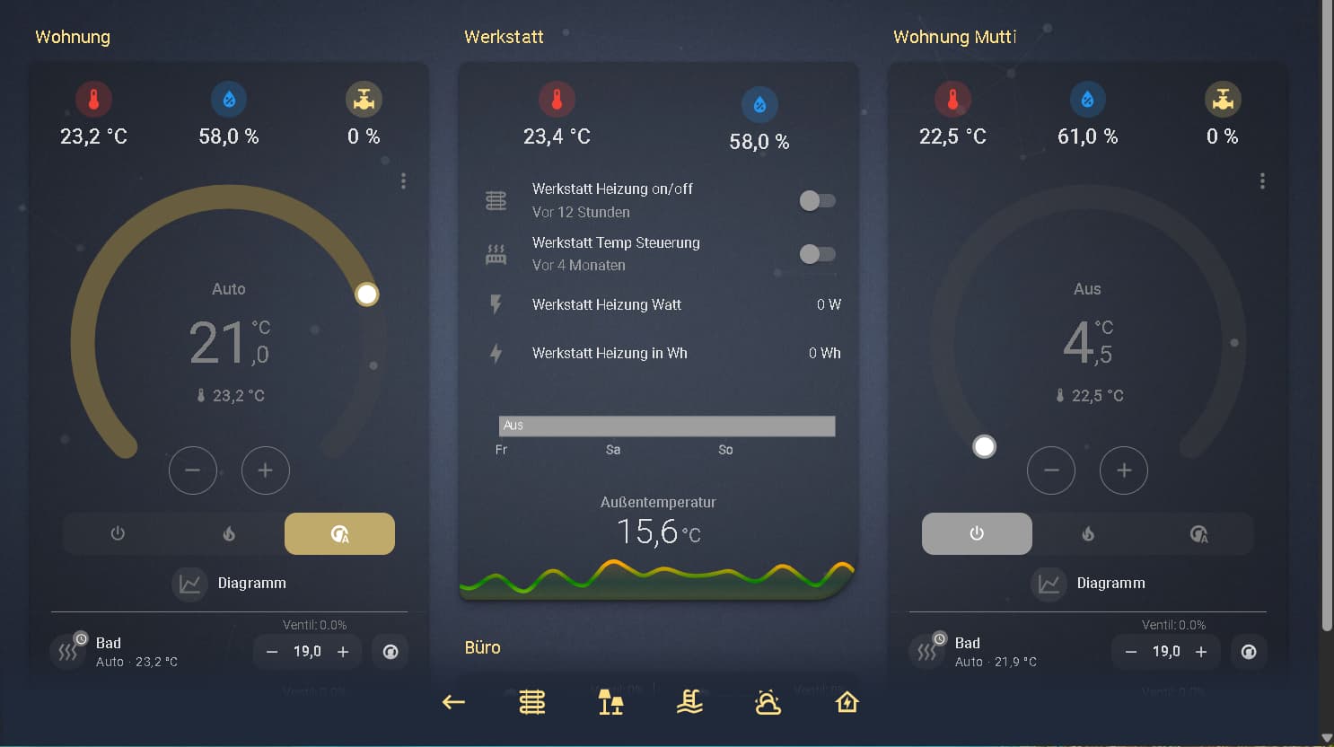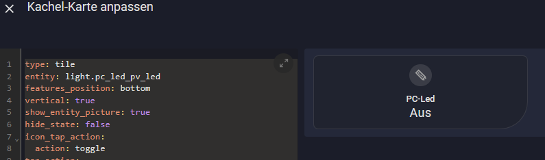 @Gexle Du hast bereits in der Card die grid_options aktiv. D.h. du hast jetzt 9 Spalten und zwei Zeilen belegt. Wenn du die Zahlen änderst, ändert sich auch die Größe der Card. Zweite Möglichkeit wäre über Card-Mod die Höhe und Breite zu definieren. Ich habe das hier im Beispiel jetzt mit Absicht übertrieben, so dass du den Unterschied siehst. Na Möglichkeit sollte man aber mit den grid_options arbeiten, da so das grid erhalten bleibt. Innerhalb einer Card, also z.b. in der custom:vertical-card von gestern könnte man dann auch gut mit festen Höhen und Breiten arbeiten.