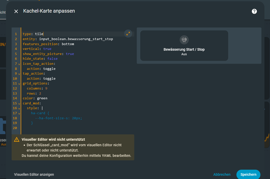 Das ist kein Fehler in deiner YAML, sondern nur ein Hinweis, dass du die Karte ausschließlich im YAML-Editor bearbeiten kannst.