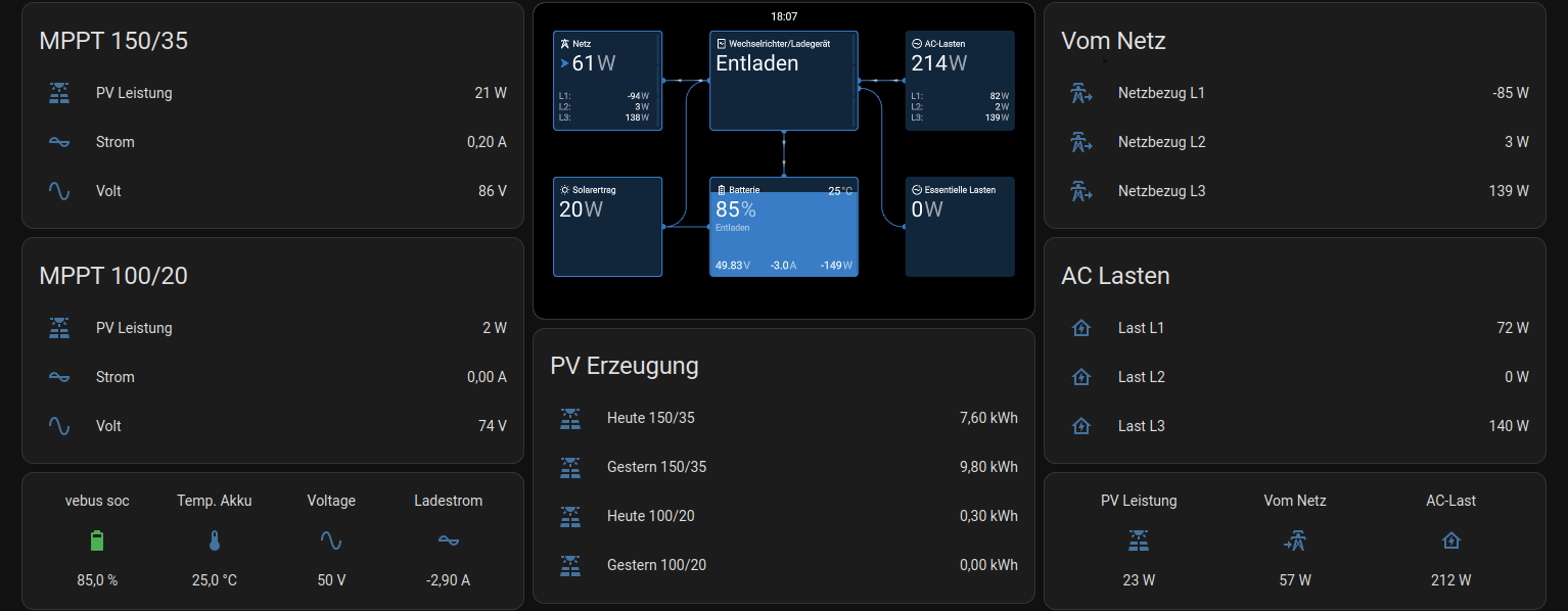 Hi, @Westi ich würde mich dafür interessieren wie du die Victron Daten erhällst. Wir haben selbst ein Womo und Victron verbaut.