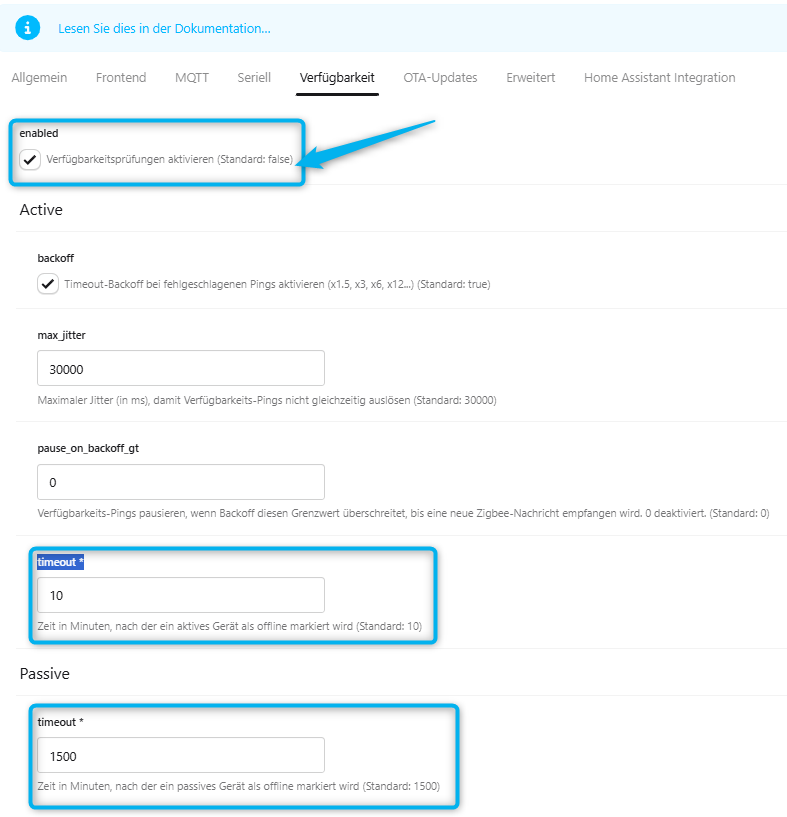 Die Verfügbarkeitsmessung von Geräten in Zigbee2MQTT ist standardmäßig ausgeschaltet.