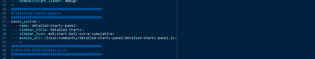 Damit das Dashboard in der Sidebar angezeigt werden kann, mĂĽsst ihr in der configuration.yaml am Anfang diesen Code einfĂĽgen: