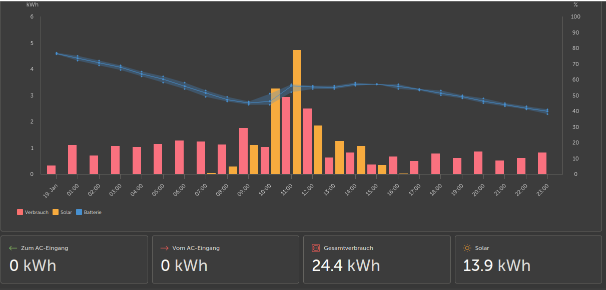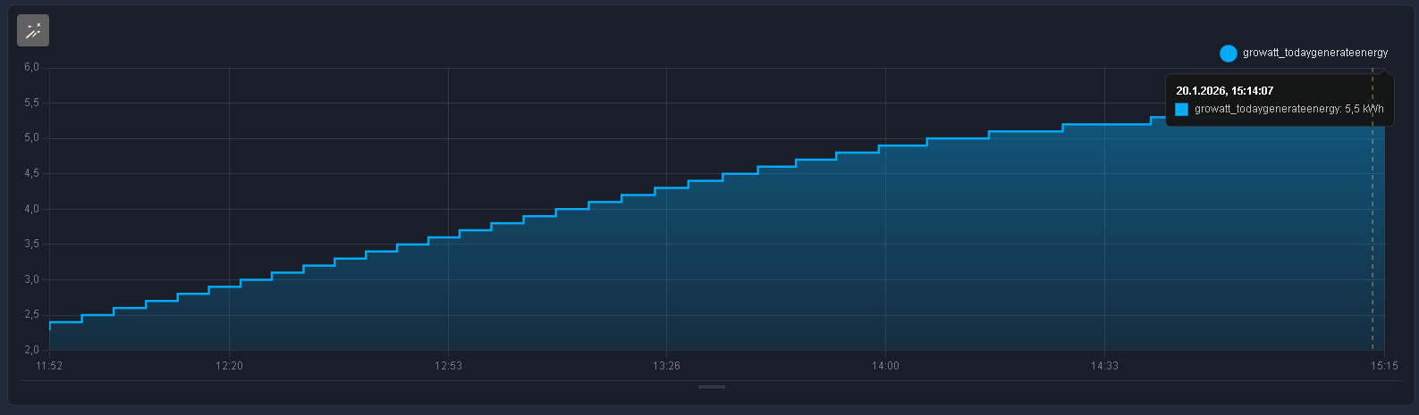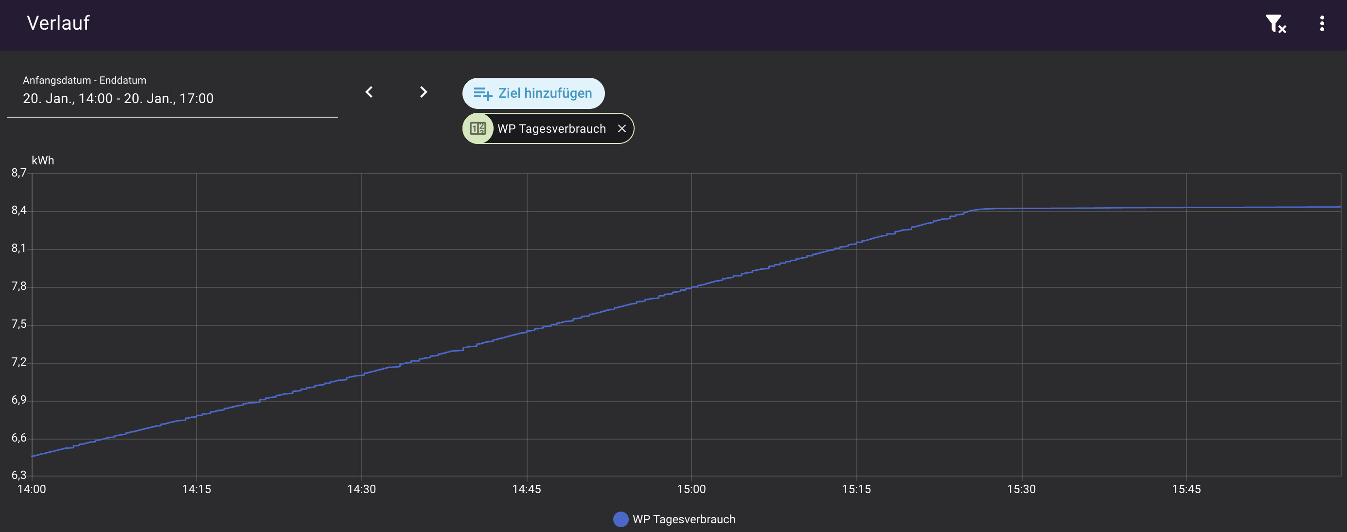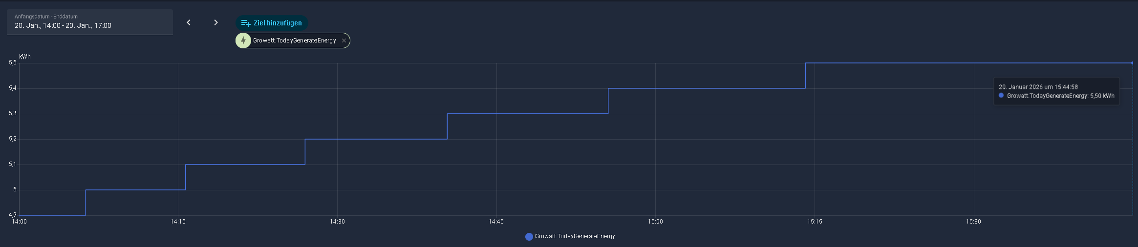 Der Verlauf entspricht genau dem Wert von Grafana und DCP hat eine Abweichung von ca. 1 kWh: