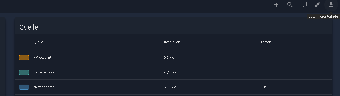 Oben rechts kannst du eine csv mit den Werten exportieren, mache das mal bitte fĂŒr deinen gezeigten Zeitraum und schicke mir die csv oder du schaust sie dir mit dem HA_Anlayzer-Tool an und vergleichst du Werte zu DCP bzw. Grafana.
