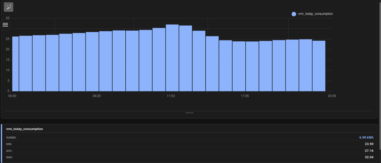 Im unterem Bereich sieht mal die Werte im zweiten Bild ist das der Wert was ich Grafana angezeigt wird und im Dritten ist das der Wert was im VRM angezeigt wird. Das ist der Wert der es auch tatsÀchlich ist!