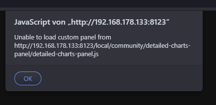 So habe mir jetzt mal das ganze angeschaut und habe auf meinen Testsystem Detailed Charts Panel installiert so wie es im Wiki beschrieben! Da war das noch nicht drauf, dann habe ich die zwei Ordnerstrukturen verglichen und die stimmen mit meinem produktiven System ĂŒberein! Testsystem funktioniert es, am produktiven System nicht und man bekommt die Fehlermeldung. Auch nach einem Neustart des System und auch Cache löschen immer noch das selbe.