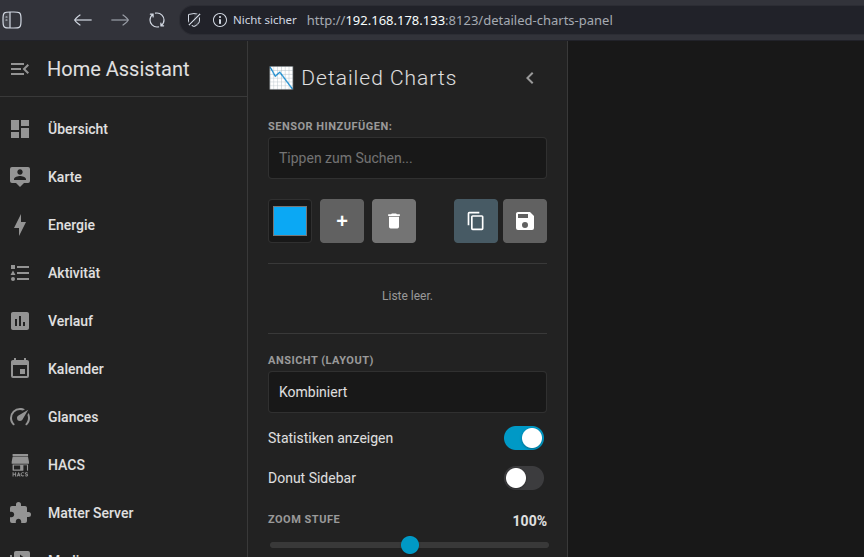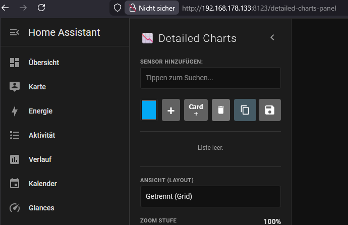 Teste mal die local Adresse: http://homeassistant.local:8123/detailed-charts-panel