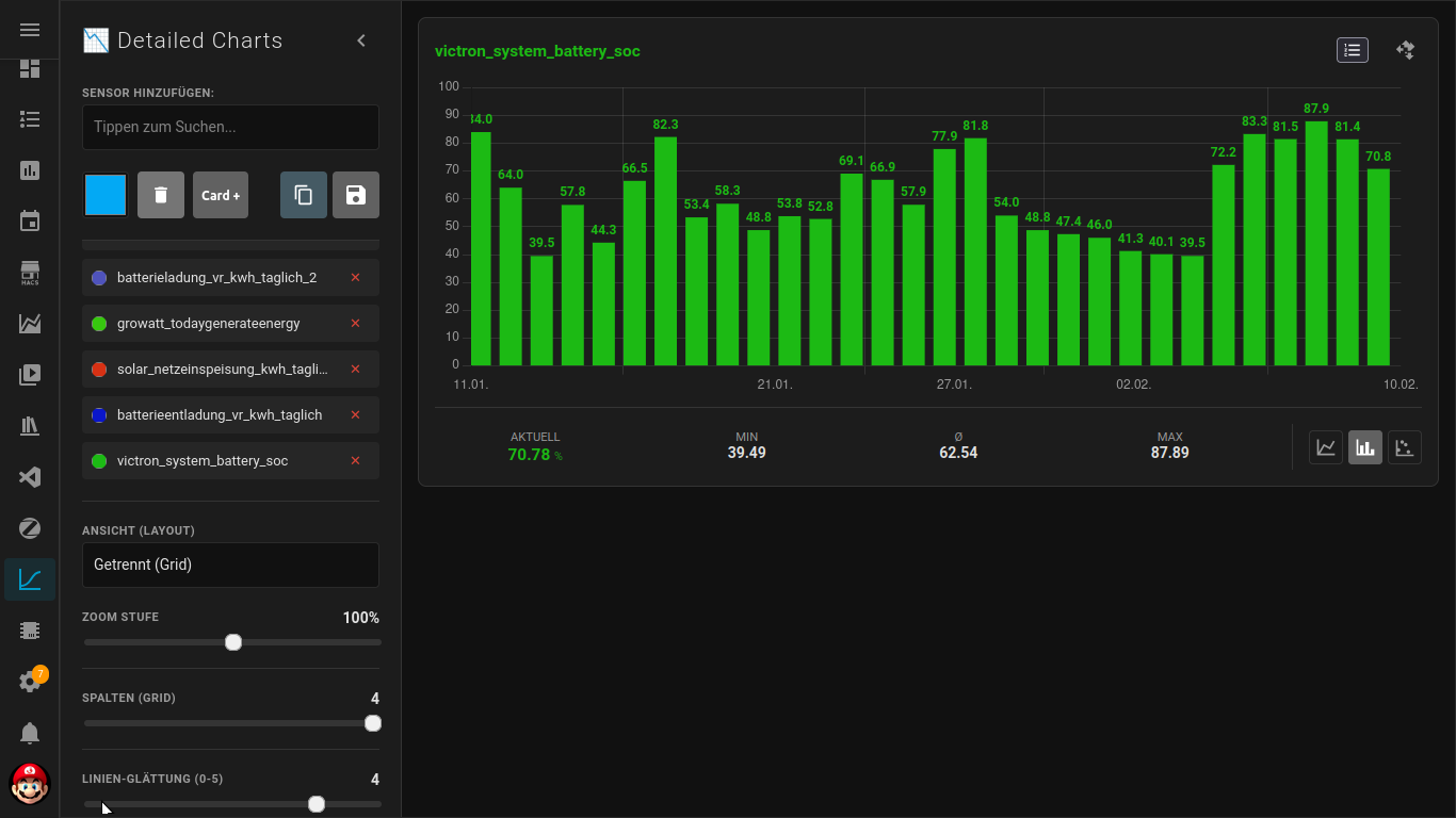 @jayjojayson Frage, „Meine neue Ansicht“ mit deinen Daten von deiner PV Anlage sind nicht Standard wenn man Detailed-Charts-Panel installiert? Ich glaube das ist noch eine Altlasten von den Test die ich gemacht habe! Die sind aber noch hier, wohl ich schon mal alles gelöscht habe und neu installiert!