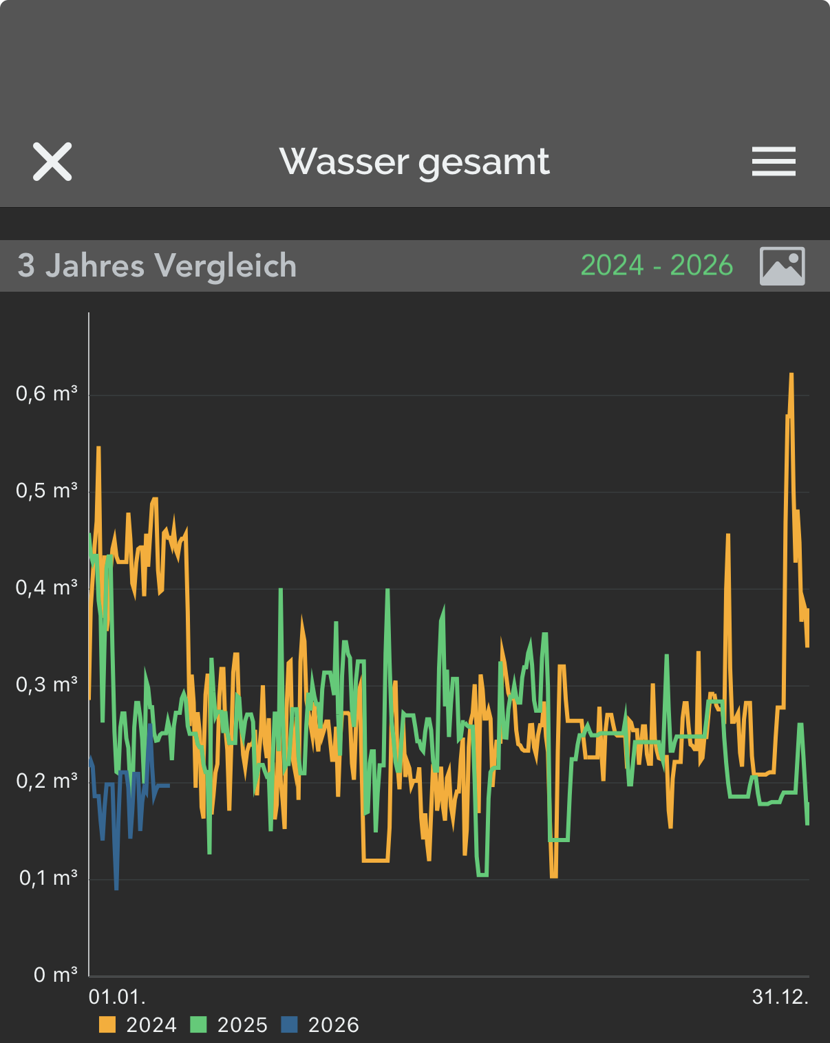 Eine Frage hätte ich noch dazu… Es gibt auf ios die App EnergyTracker. Dort ist es möglich aus den gesammelten Daten auch den Verlauf der letzten 3 Jahre übereinander zu legen. Was ich Spannend finde ist, wenn man zumindest zum Vorjahr einen Vergleich hat und das über einander visualisieren könnte.