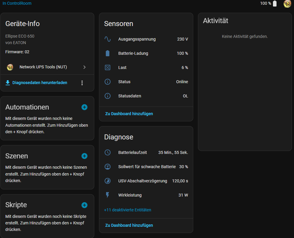 Ich versuche meine EATON 3S 700 DIN USV nach der Anleitung https://www.simon42.com/home-assistant-usv-integration-nut/#usveinbindung-von-home-assistant einzubinden. Leider scheint das nicht zu funktionieren.