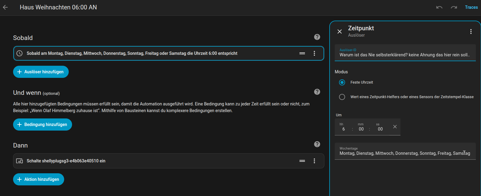 Das wird in HA sicher nicht anders werden, da ich der Typ „Einmal Eingerichtet, nie wieder angeschaut“ bin, dadurch gibt es auch nur eine sehr kleine Lernkurve