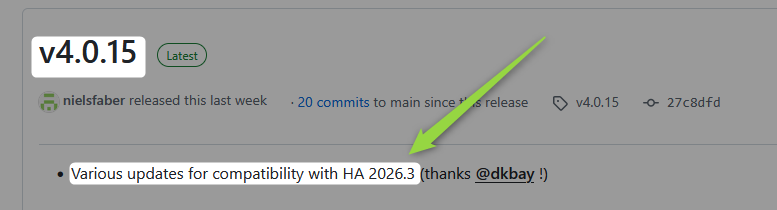 Andersrum wird ein Schuh draus. Die Ersteller von HACS-Erweiterungen sollten doch zusehen, dass sie ihren Code so anpassen, dass er mit HA läuft, denn sonst könnten Probleme wie bei dir entstehen. Genau das passiert auch recht oft, nur dauert das nach Bekanntwerden einige Zeit.