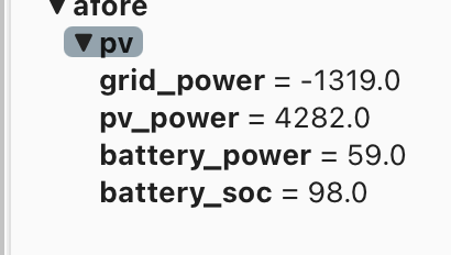 Zeige mal die komplette Seite aus deinem MQTT Explorer, nicht nur den Ausschnitt. afore ist doch noch ein Unterpunkt von irgendwas.