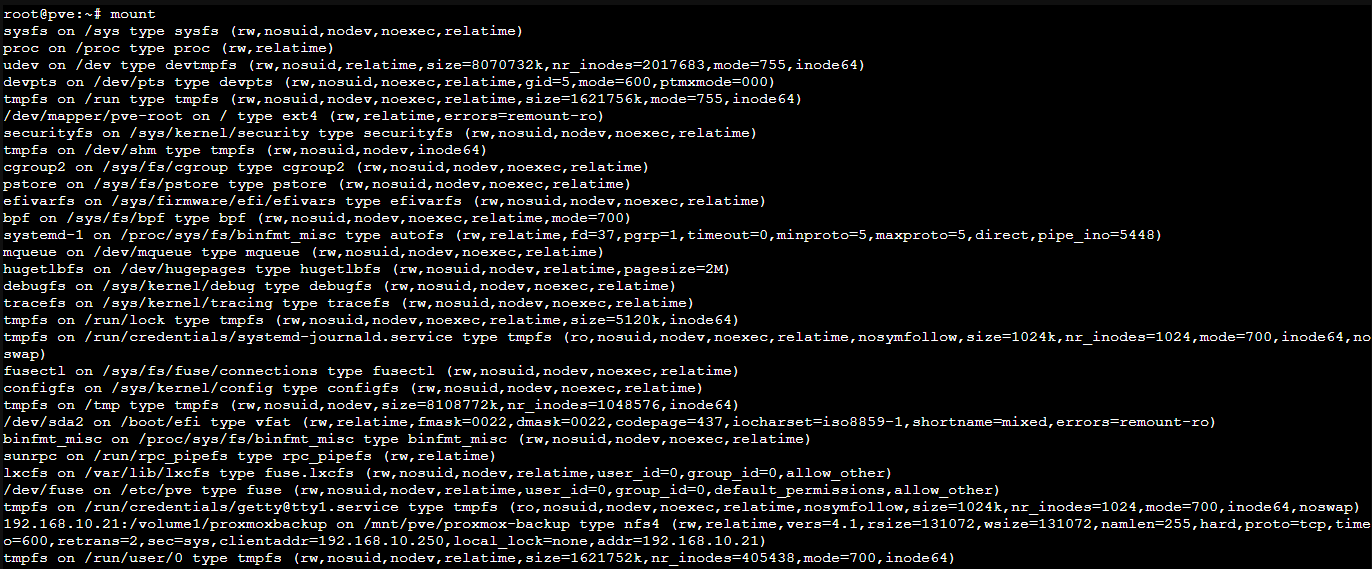 in der Shell des proxmox Knotens nach Ungereimtheiten schauen, nachdem ich mir sicher bin, dass in der Definition VM und in der VM kein mount zu diesen Freigaben mehr befindet