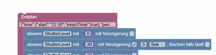 Eine Einfache Schaltung, Licht (Stern) zu einer Bestimmten Zeit aus mit 5 Sekunden Verzögerung als Äquivalent zur meiner Rollladenschaltung im iob