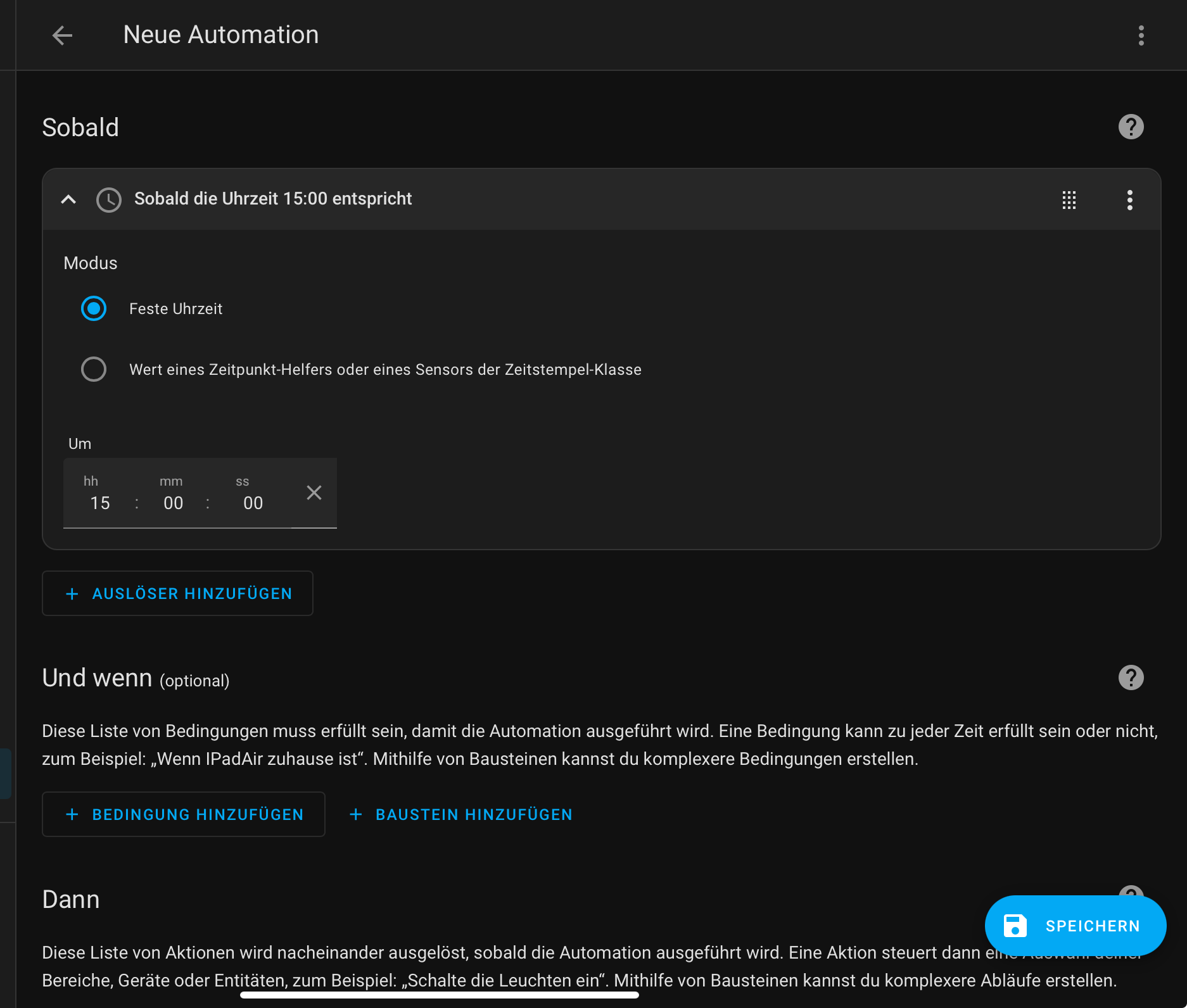 Wie kann ich bei HA eine Automation erstellen wenn der Auslöser wie folgt aussieht