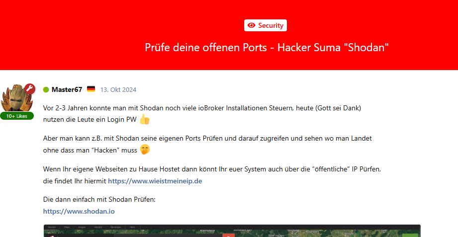 Wenn man das nutzt, da ich von „Außen“ nicht auf HA oder den IOB zugreife, benötige ich kein VPN, aber ich stelle „öffentliche“ Webseiten, per Nginx, bereit da ist es nicht verkehrt hier mal seine Ports zu Prüfen
