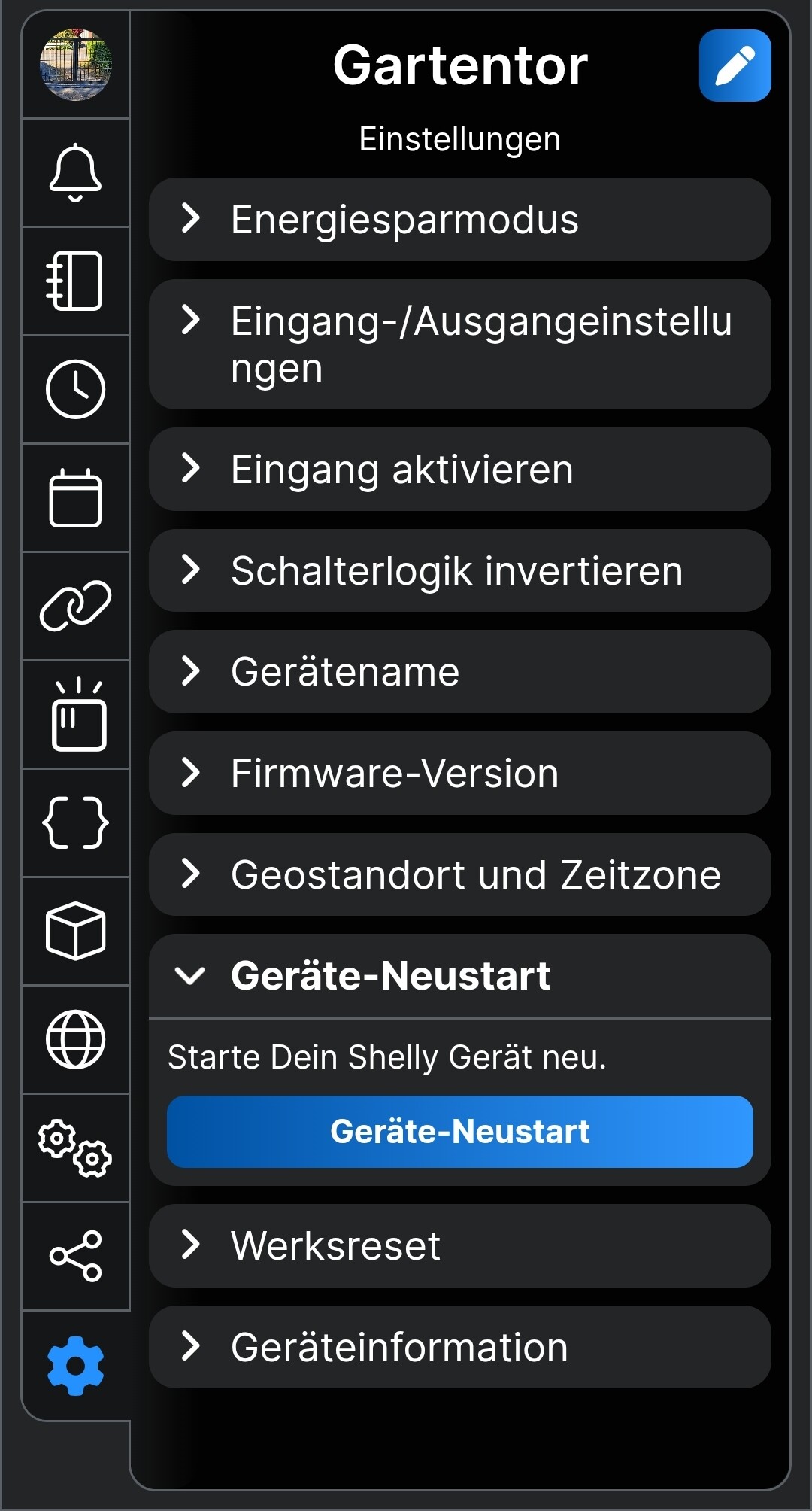 Ich hatte vor kurzem mein Gartentor mit einem Shelly 1 Gen 4 von unterwegs aus steuerbar gemacht. Dies hat auch 2 Wochen einwandfrei funktioniert, jetzt jedoch macht das Tor, was es will. Es ist über FB und App normal steuerbar, kurz danach öffnet und schließt es dann aber auch scheinbar willkürlich. Ich hatte kurz meine neue JBL Bluetooth Box in Verdacht schuldig daran zu sein, aber es passiert auch, wenn diese aus ist. Ich habe den Shelly nun schon mehrfach auf Werkseinstellungen gesetzt und neu installiert, jedoch ohne Erfolg. Kann der auch einfach defekt sein?