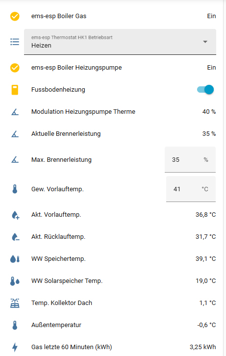 Nachdem ich mit dem EMS an meiner Gastherme nun bereits knapp 2 Monate versuche die Heizkurve zu optimieren und die Vorlauftemperatur so weit zu drosseln, dass ich auf Wärmepumpenniveau komme, habe ich annähernd die perfekten Einstellungen und 3 Automationen am laufen.