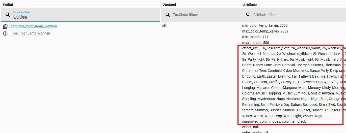 In der Automation dann einfach unter “Effekt” den exakten Namen aus der Liste übergeben:
