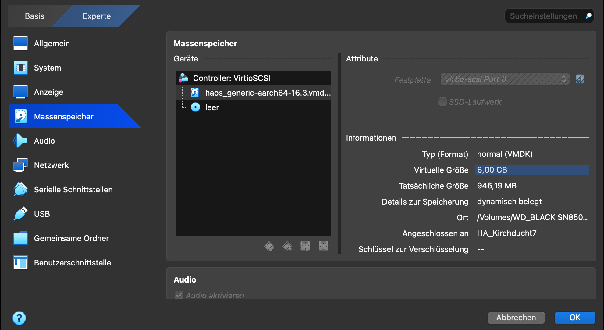 Tatsächlich habe ich stumpf die Anleitung von HA befolgt und zusätzlich ein englischsprachiges YouTube Video. Sieht aktuell so aus wie im Anhang. Ich verstehe nicht, dass jetzt 6 GB zugewiesen sind. Kann das an der HA Datei liegen, die ich vom Server gezogen hab?