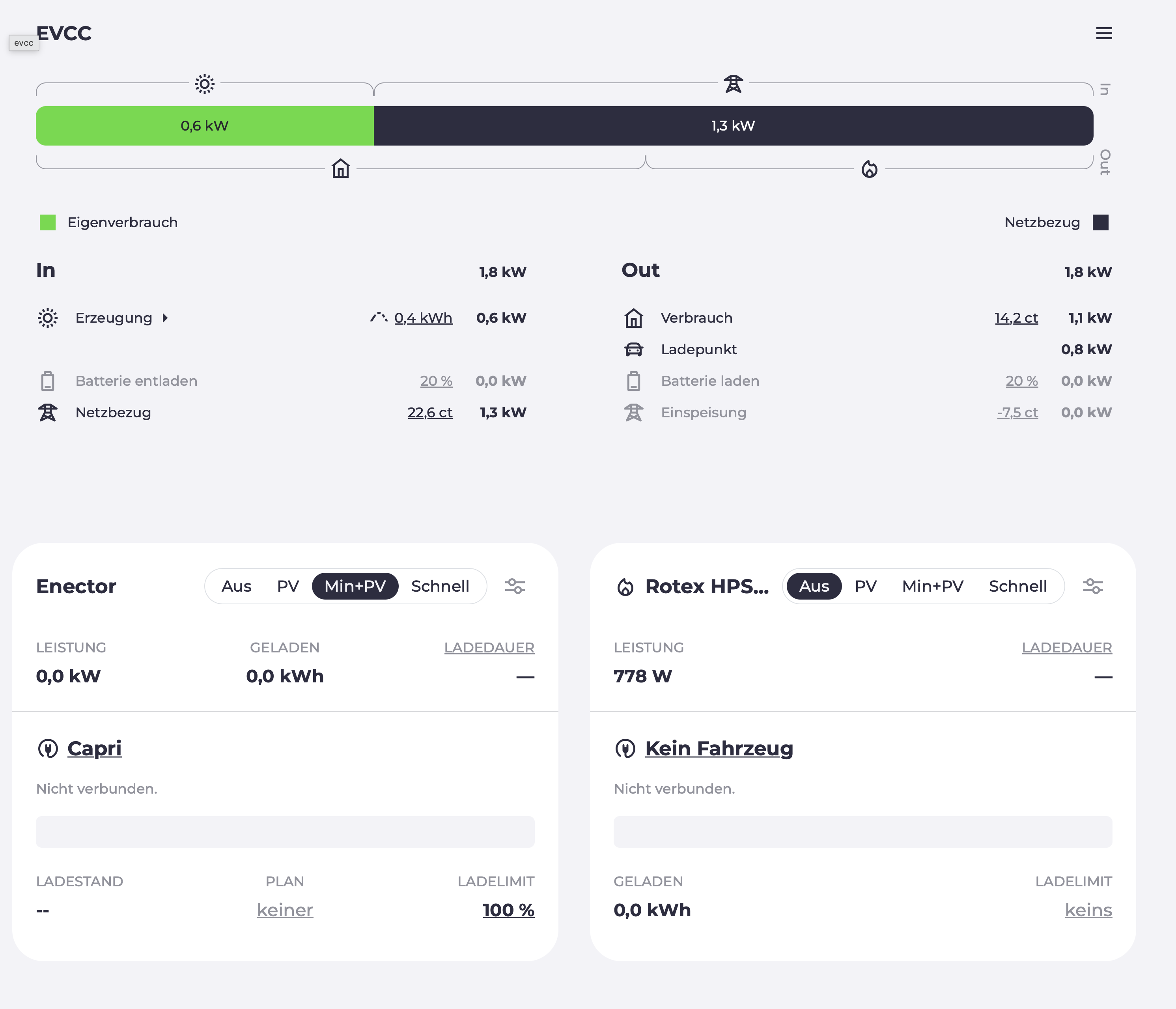 Jetzt ist die “Heizung” zwar in EVCC und auch Werte werden angezeigt aber es ist nun wie eine Wallbox und obwohl dort Leistung angezeigt wird entsteht keine Summe weil die der Heizungseintrag nichts “lädt”: