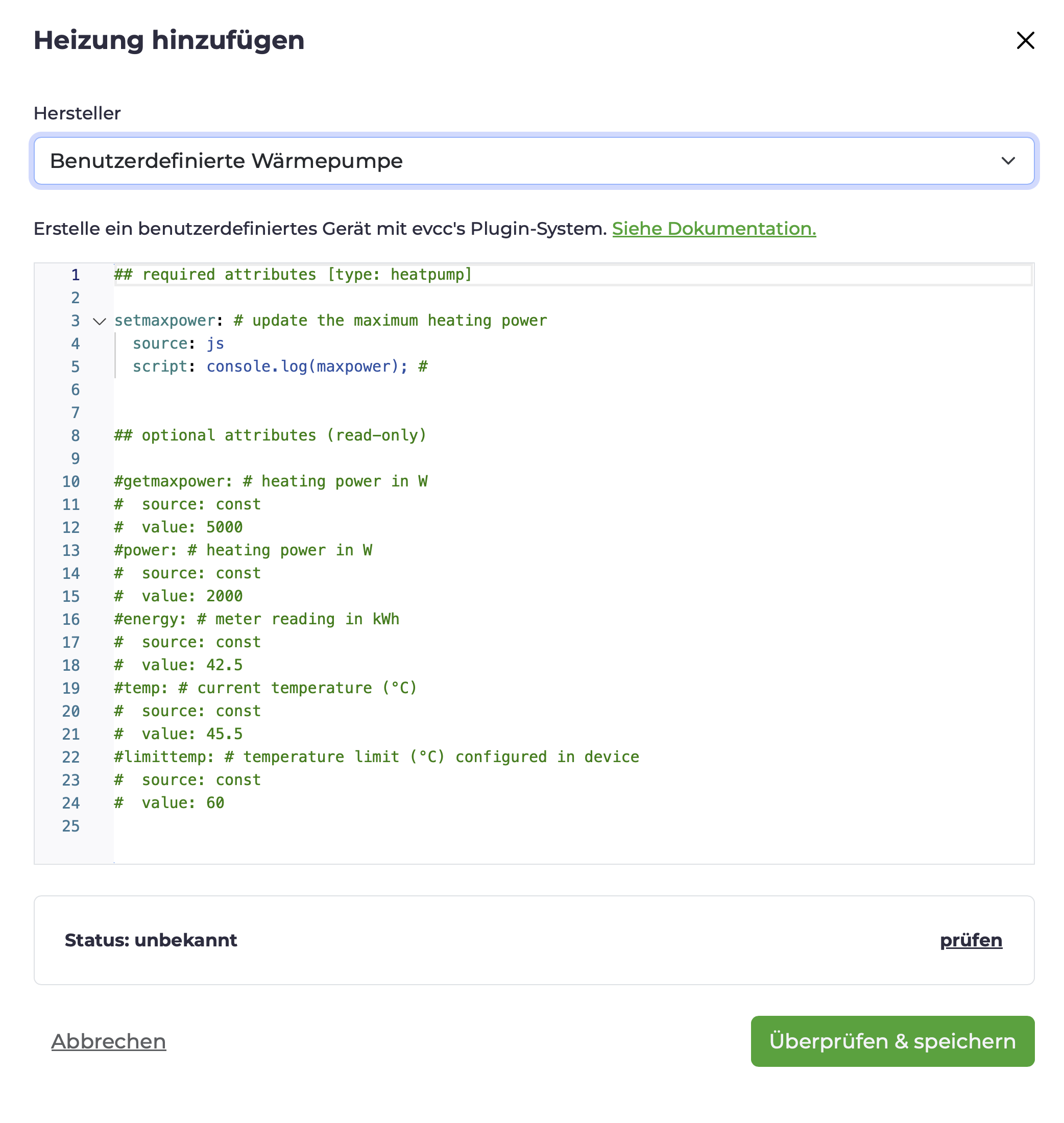 Ansonsten ginge vielleicht noch die generische Wärmepumpe, hatte aber keine Lust mich mit den Möglichkeiten der yaml auseinander zusetzen.