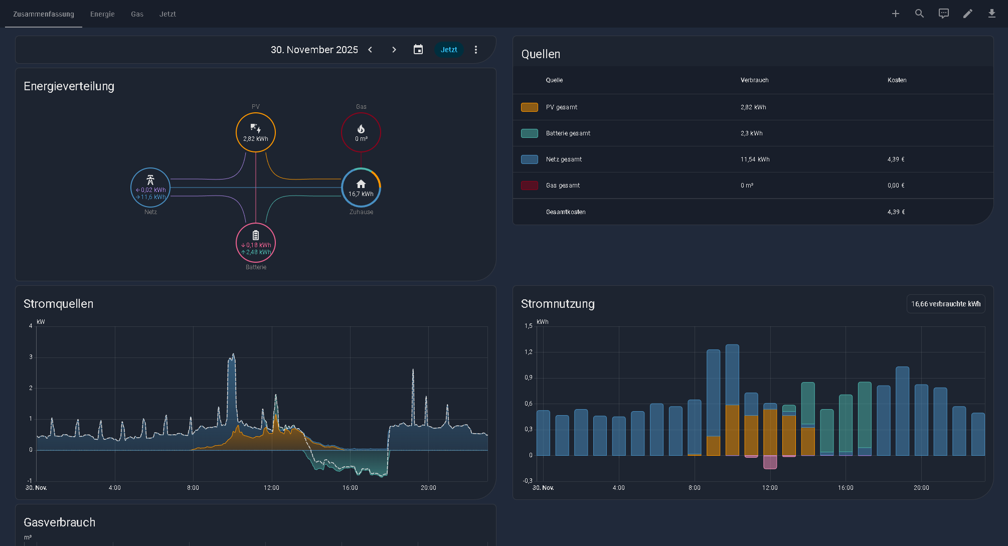 So habe das Update auch gerade gezogen und gleich mal das Energiedashboard bearbeitet. Dabei ist mir aufgefallen, mein Gaszähler läuft nicht, muss ich morgen gleich mal schauen. Naja auf jeden Fall sehr schön gemacht, auch die Unterteilung in einzelne Seiten macht das Ganze übersichtlicher. Am Besten ist jedoch, dass jetzt die Leistung in Watt über den Tag im Chart vorhanden ist.