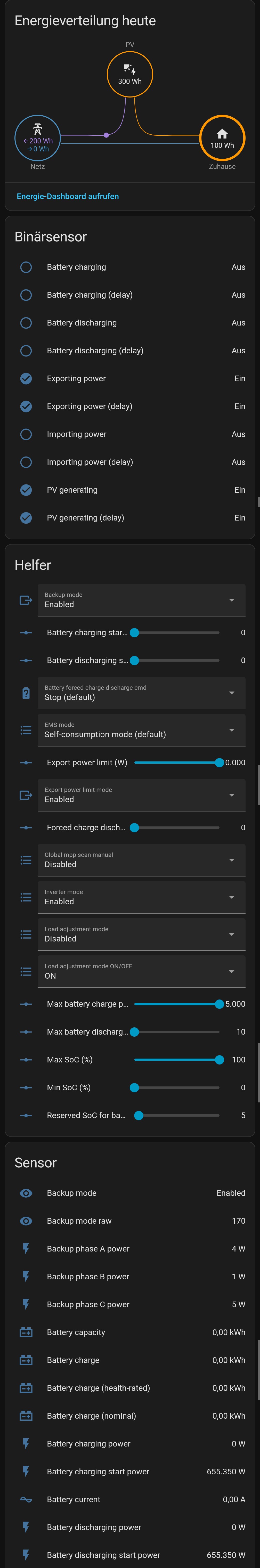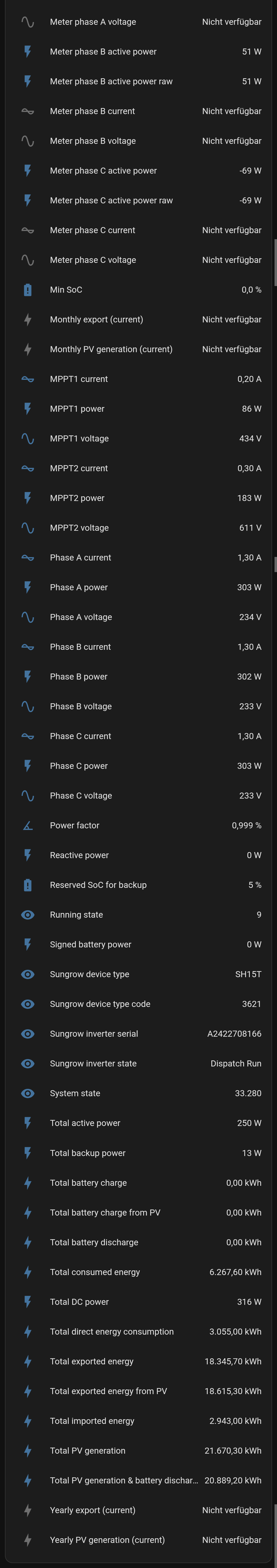 Habe da schon Differenzen zwischen Home Assistent und sungrow