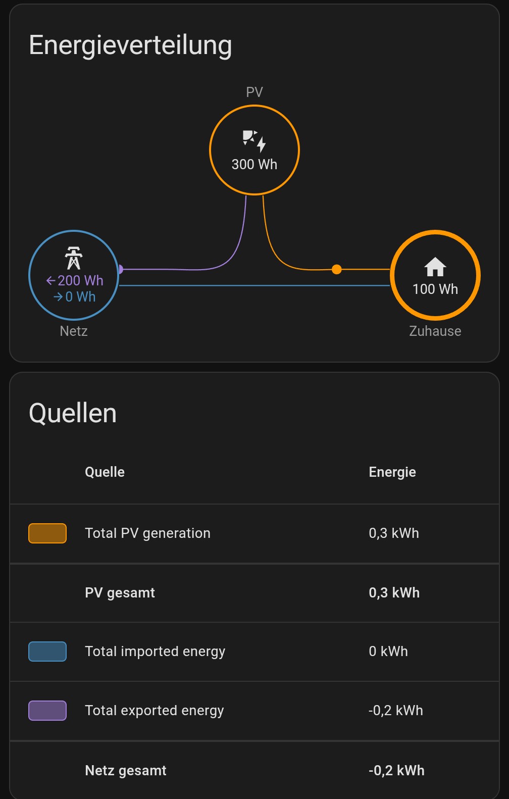 Im Home Assistent Scheint er die Werte zu runden und Einspeisung und Hausverbrauch ist irgendwie vertauscht