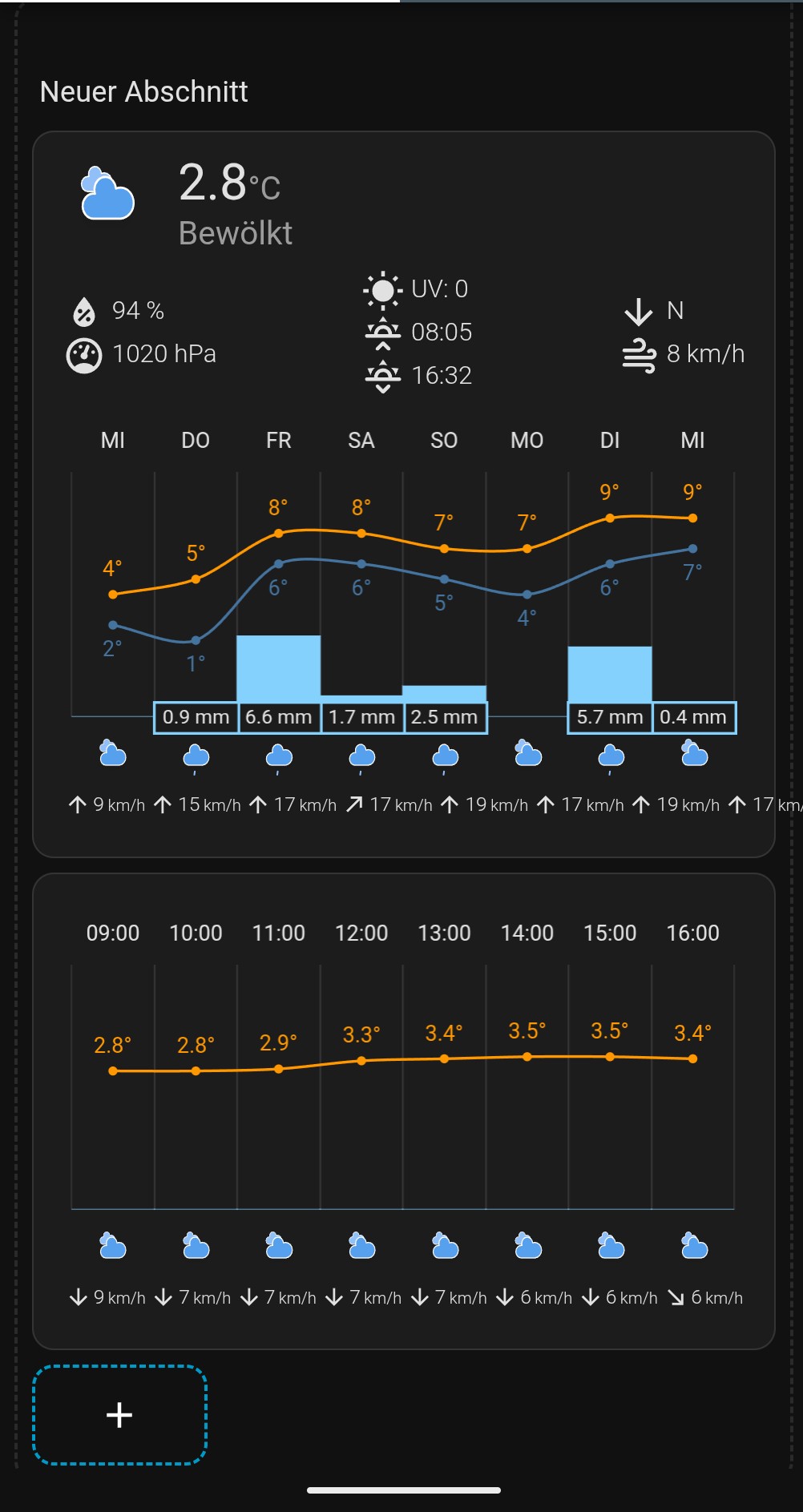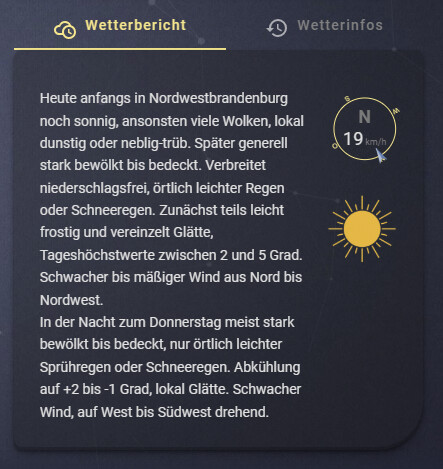 Ich lasse das Wetterdashboard jetzt erstmal so wie es ist.