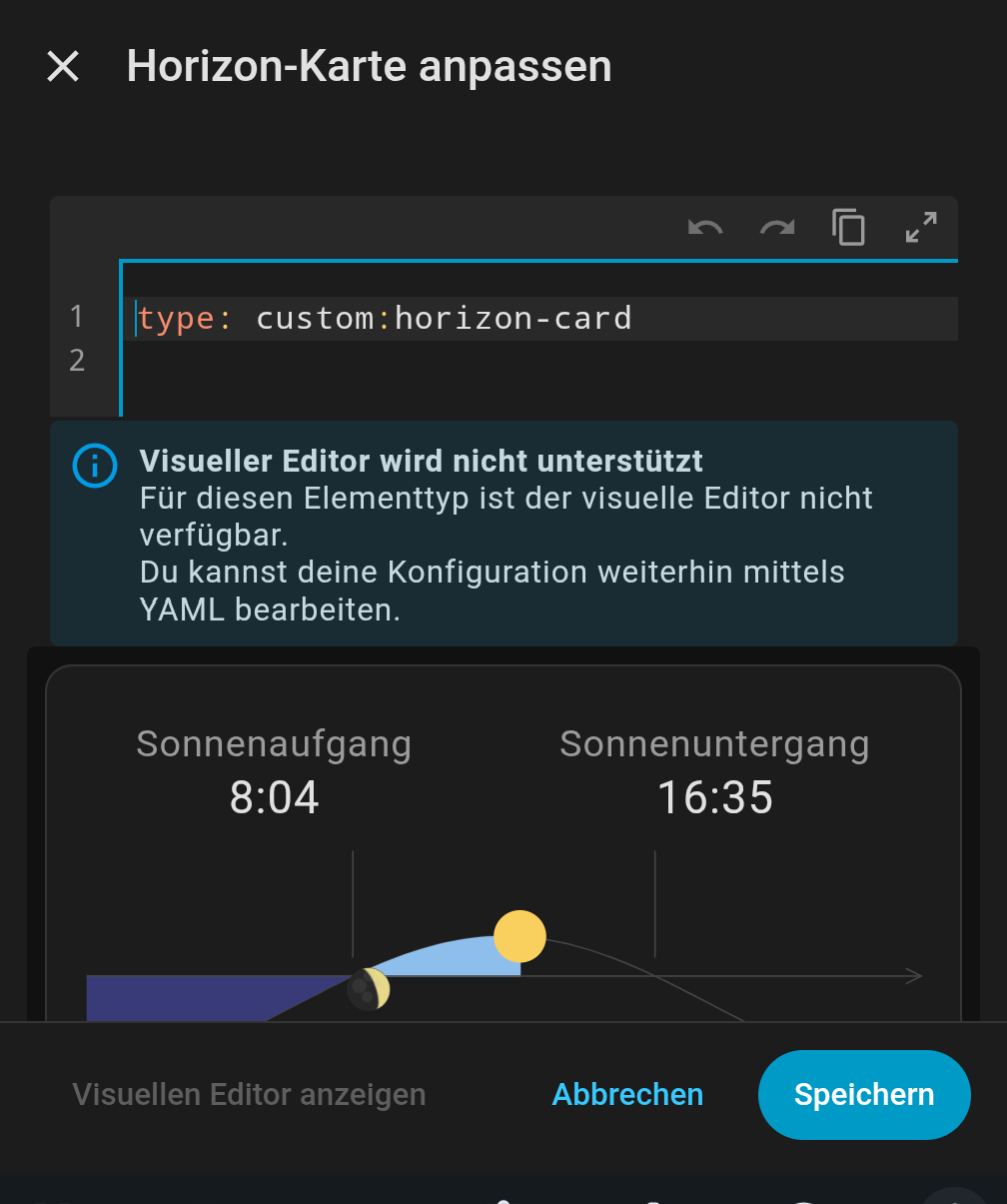 und natürlich verwendet die Karte die Sun Entität. Die bezieht sich natürlich auf Deinen Standort.