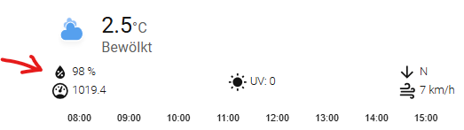Das ist der Wert, den der DWD liefert. Und nein, ich halte ihn für eine realistische Vorhersage. Mein Outdoor-Humidity Sensoren liefern, wie du ja siehst, 93% bzw 91%