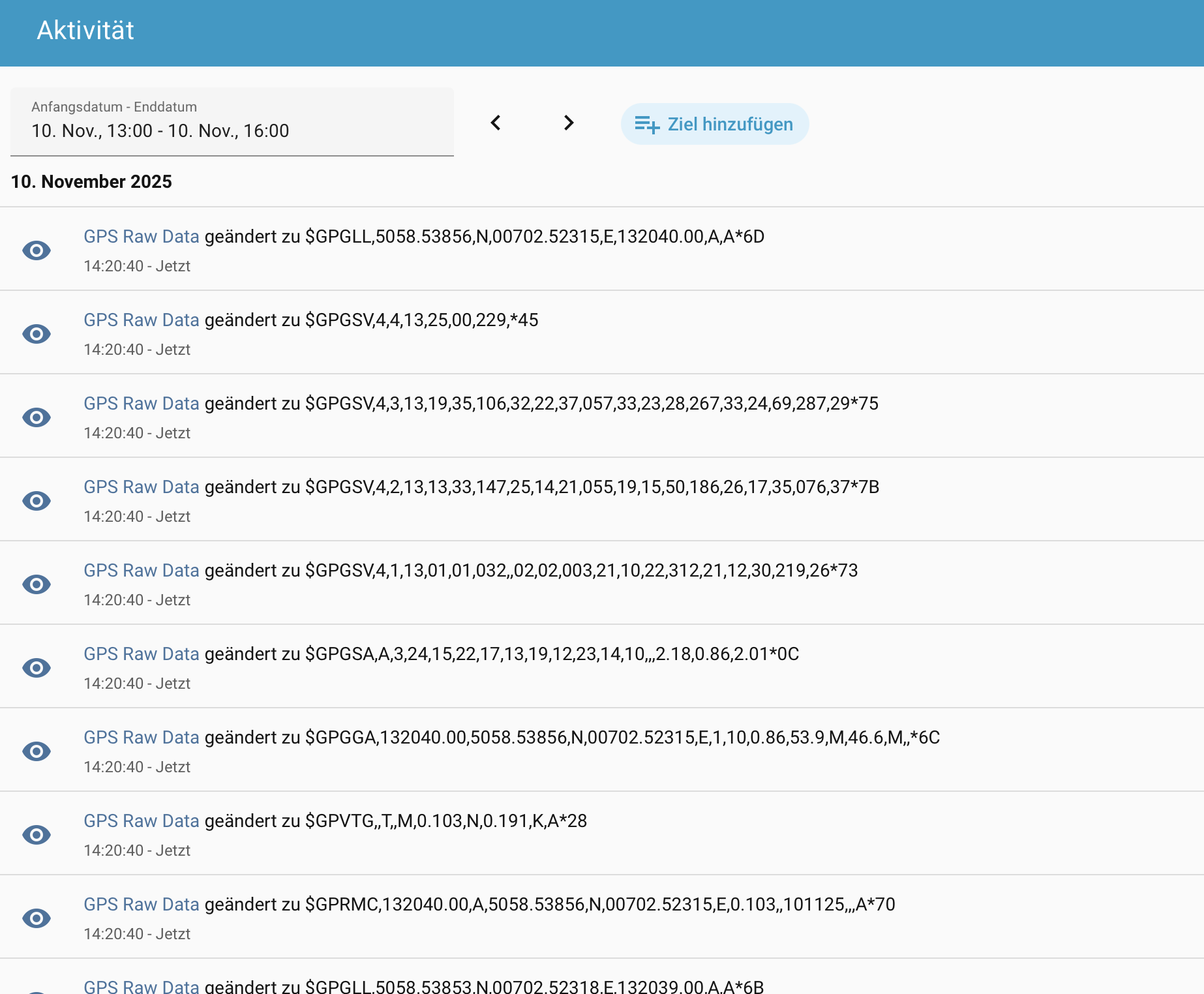 Die NMEA-Daten kann ich bereits auslesen, jedoch liefert mir das YAML Script keine Werte außer GPS Höhe.