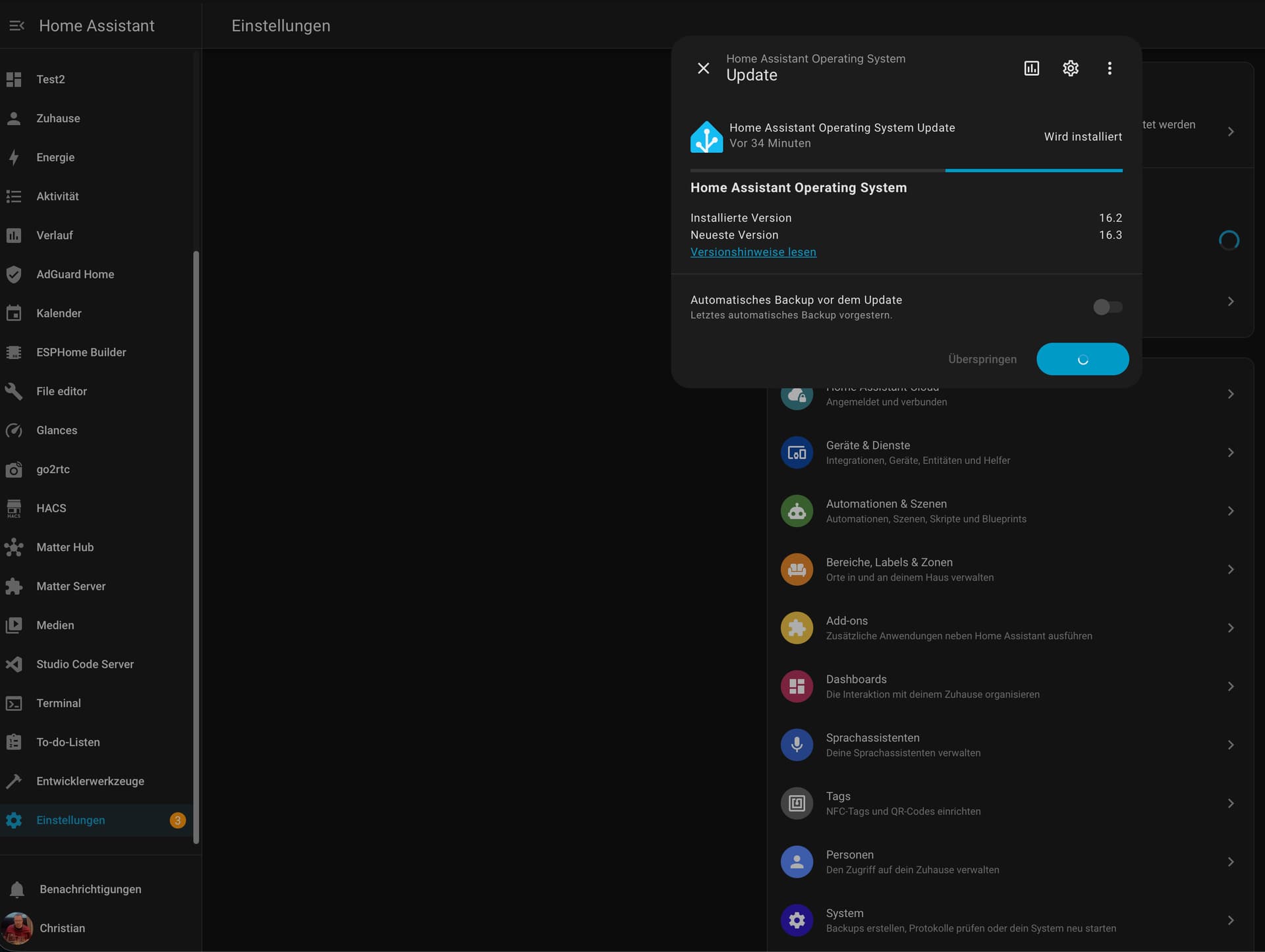 ich versuche gerade mein home assistant operating System auf 16.3 upzudaten…